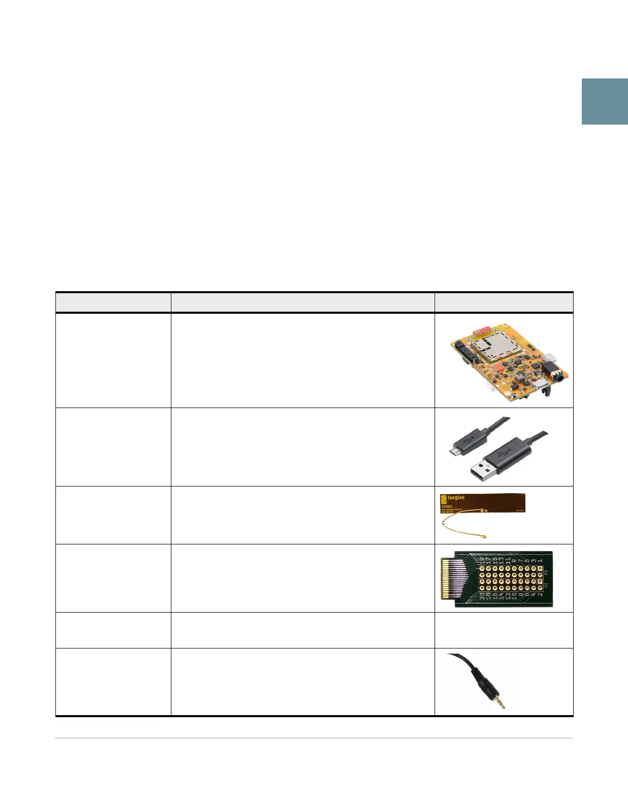 Table 1-1 details the required and optional components needed to begin using the mangOH Yellow in your