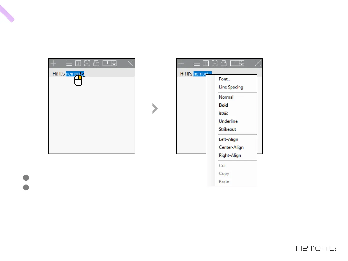 Run the nemonic application and type text.