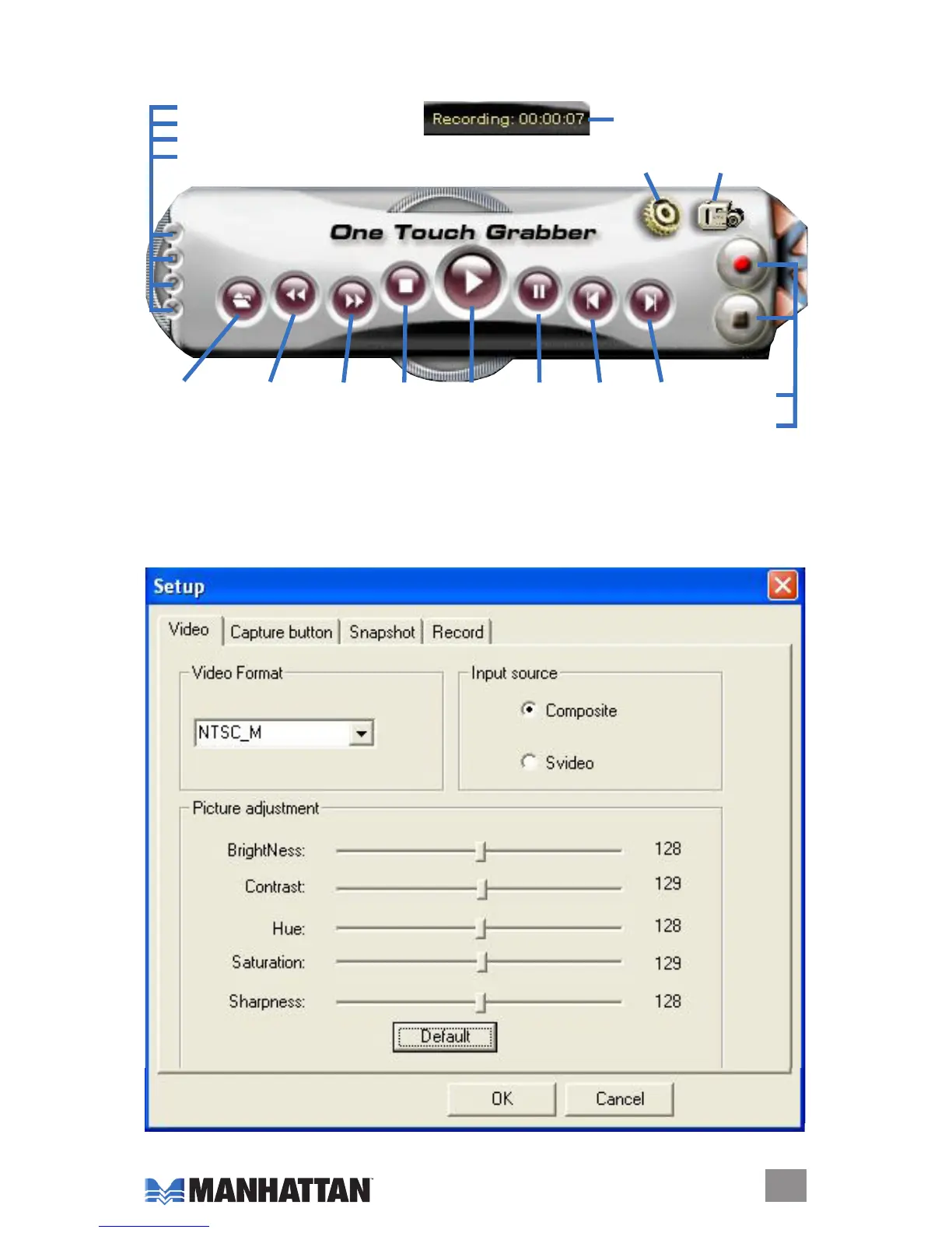 menu tabs on the Setup screen present the setup options: Video, Capture Button, Snapshot