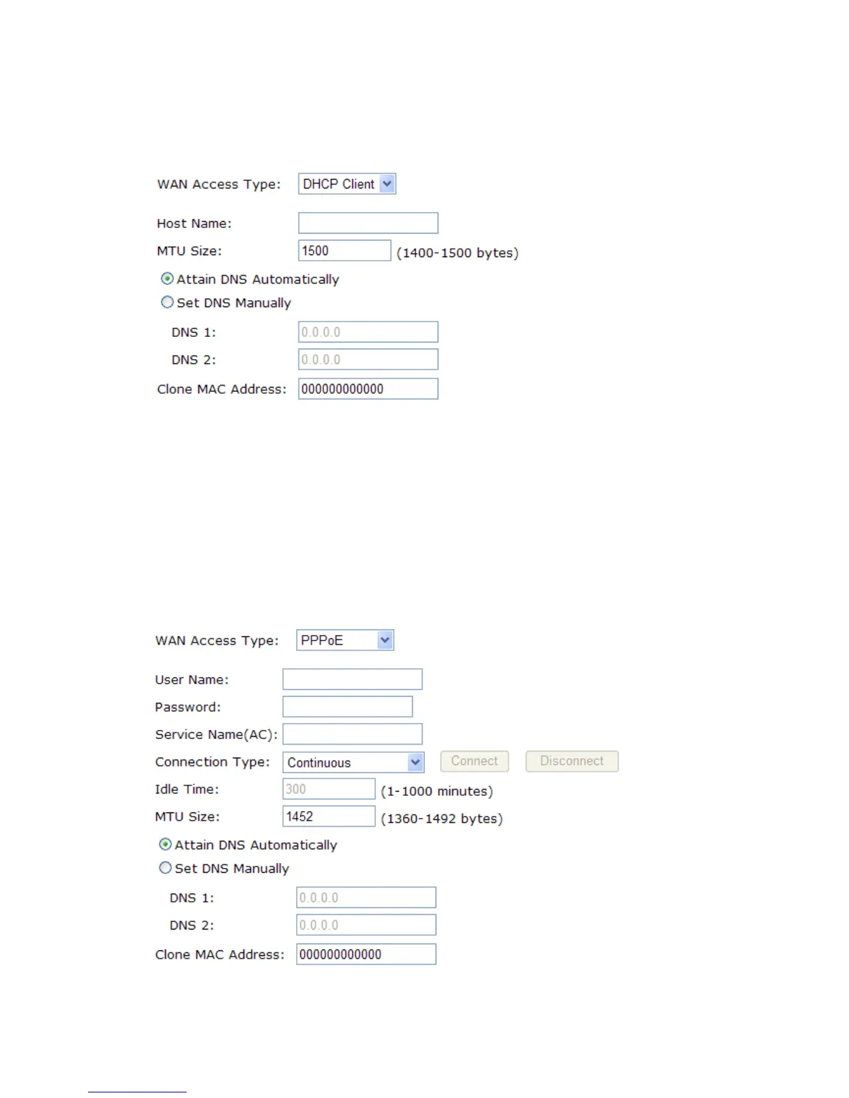 Clone Mac Address: You can configure the MAC address of the WAN.