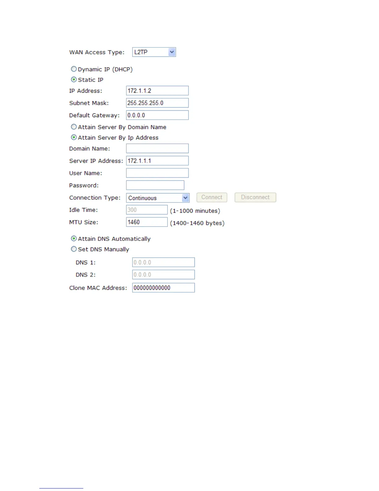 Default Gateway: Enter the gateway IP provided by your L2TP Server.
