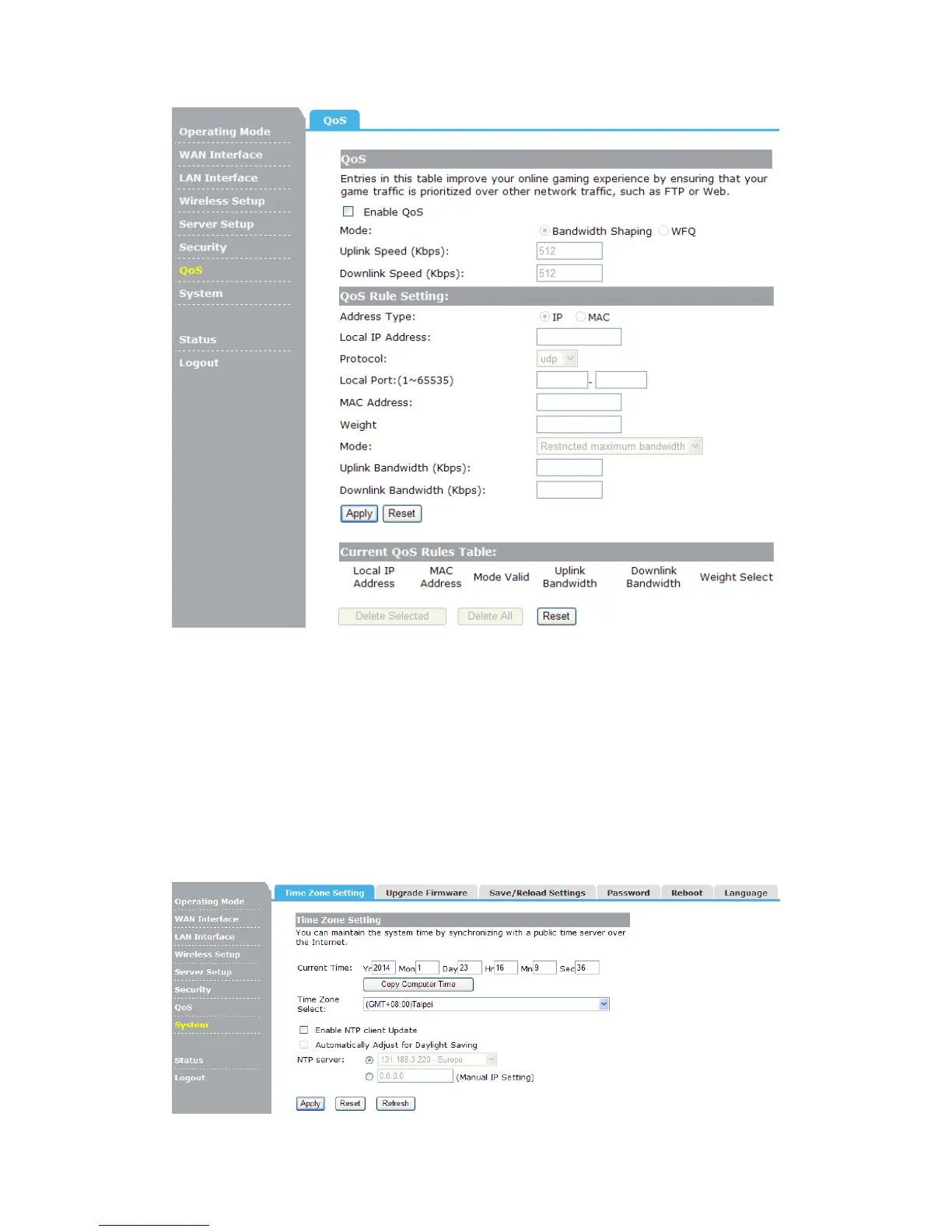 Firmware, Save/Reload Settings, Password, Reboot, Language. Click any of them,