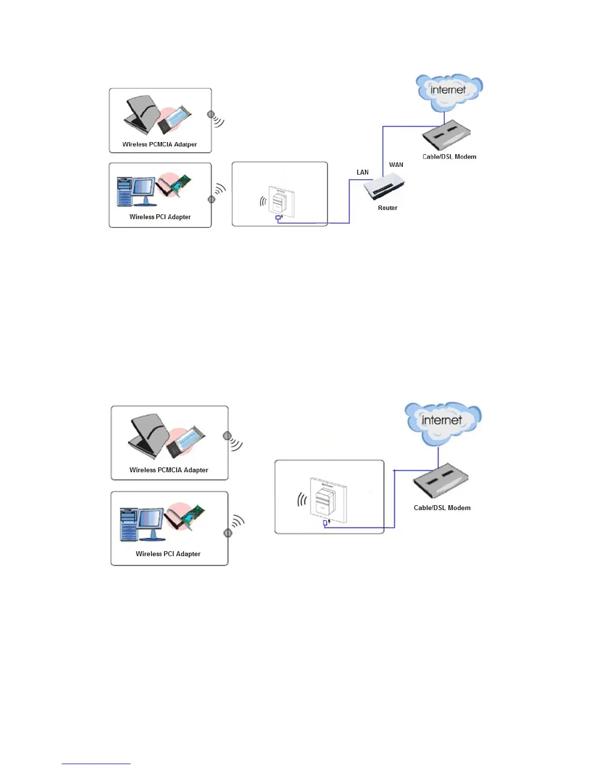 As a wireless router, Wireless AP enables multi-user to share Internet via DSL/Cable