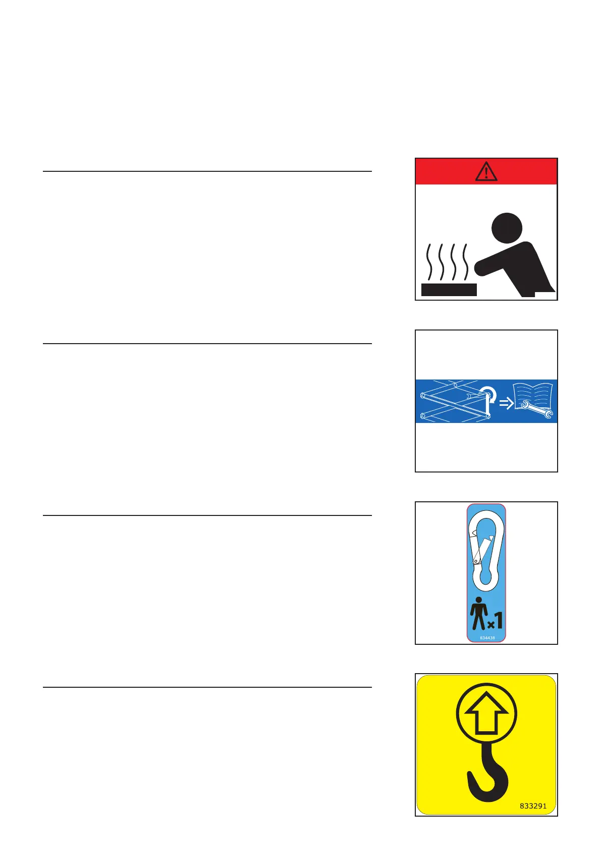 This sticker shows the attachment points for moving the lifting platform with a crane.