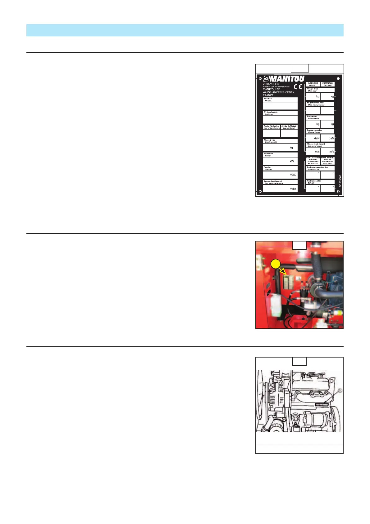The manufacturer’s plate is fixed to the inside of the engin bonnet, on the left of the oil filtrer.