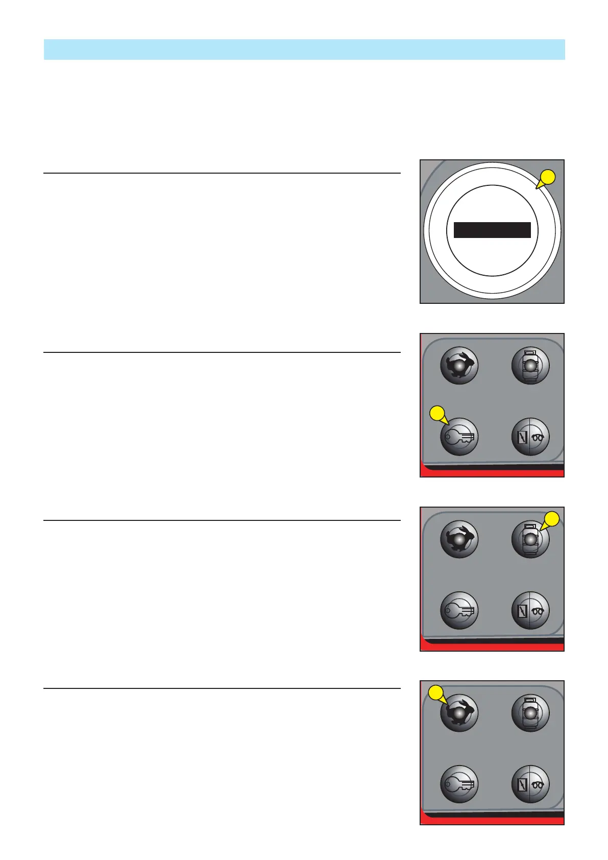 - Press this button to select the engine speed. The indicator light is lit when high idle speed is