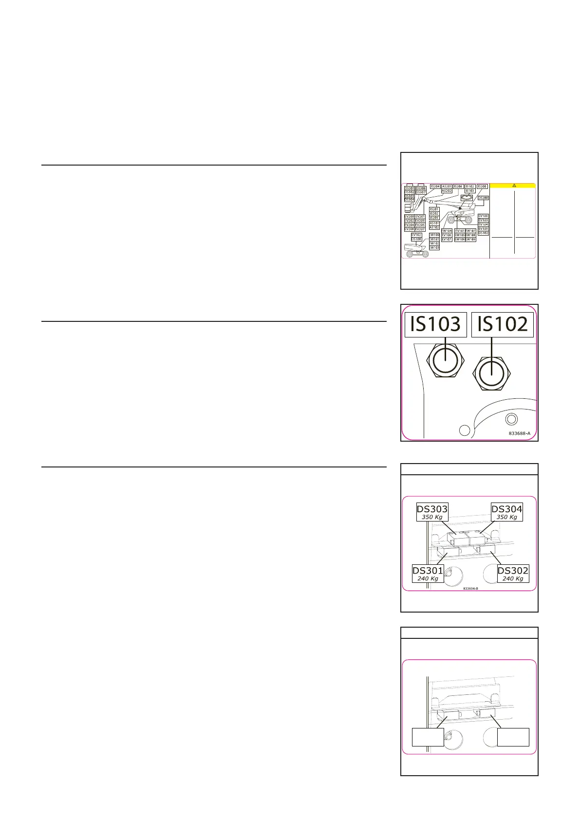 This adhesive shows the location of overload sensors and the corresponding fault codes.