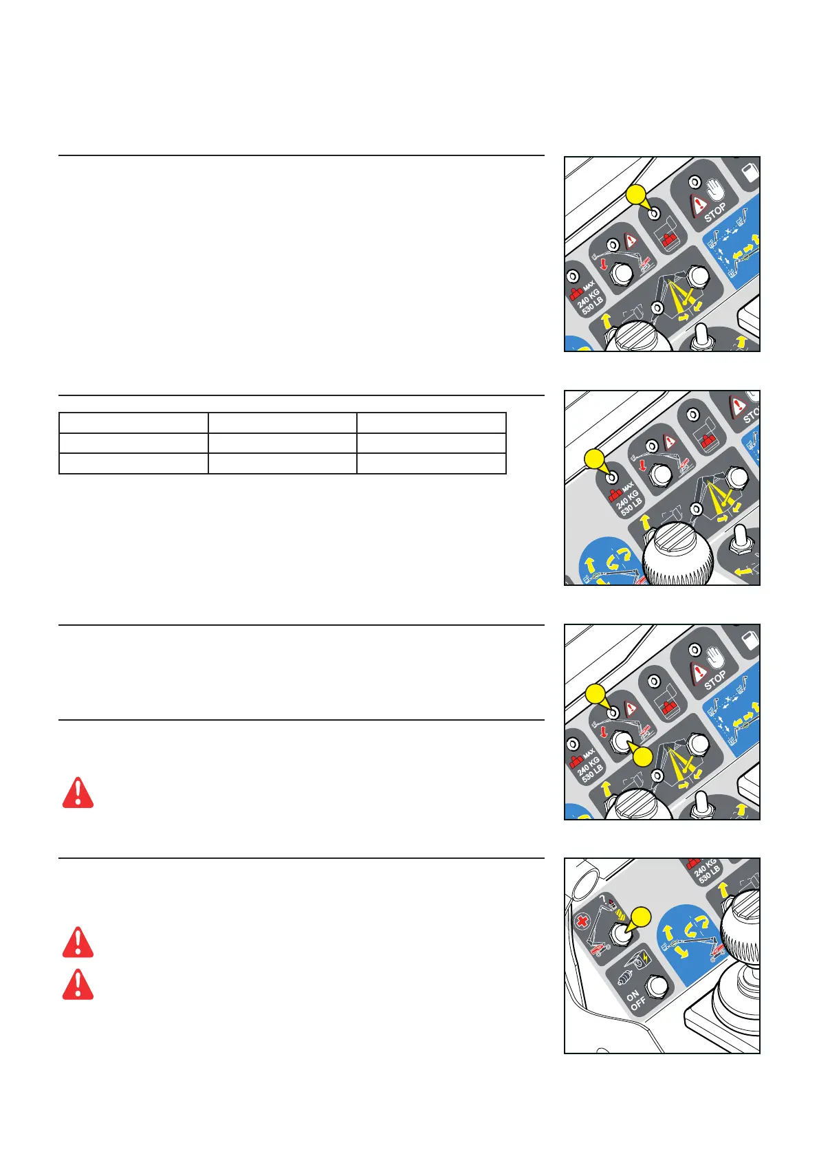 - This button neutralizes the ban on movements when the lifting platform is tilting (see the