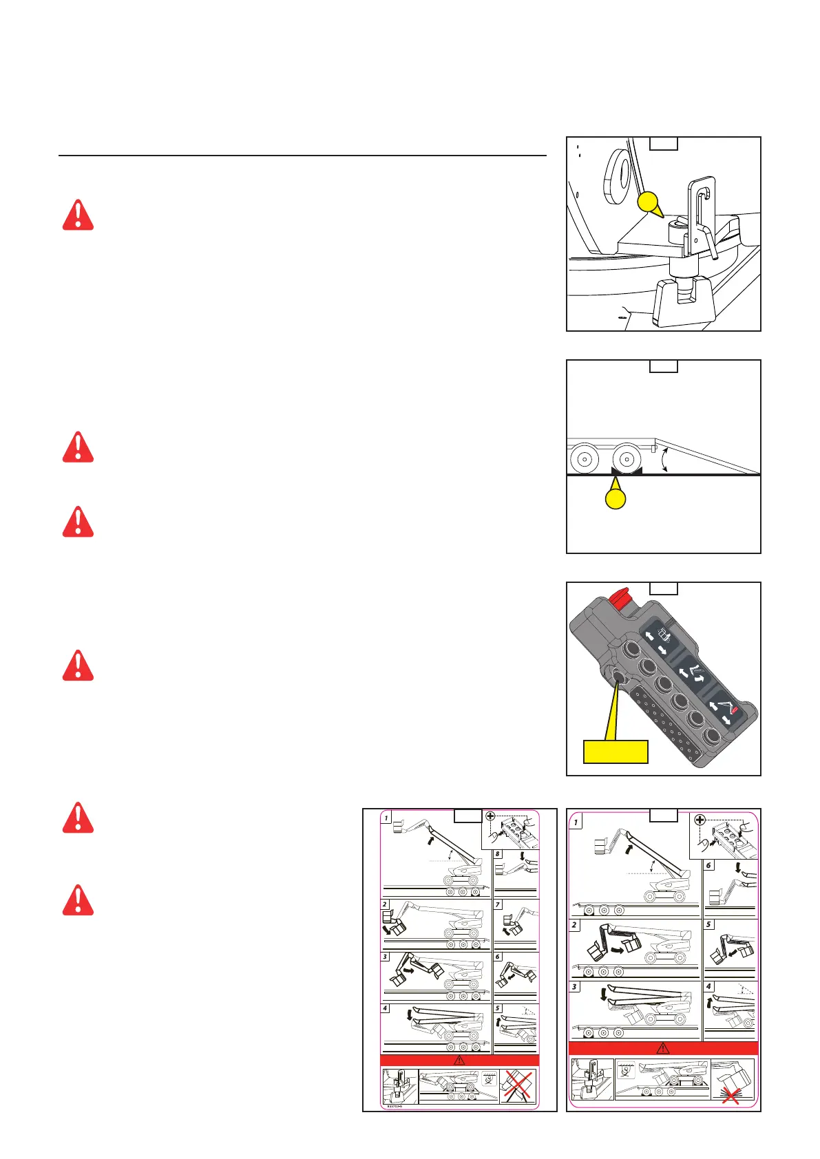 lowest possible position during the manoeuvres: there is a risk of falls or impacts (see