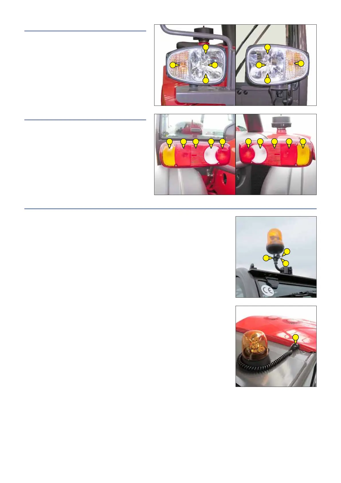 - Loosen nut 1 and remove the revolving light.