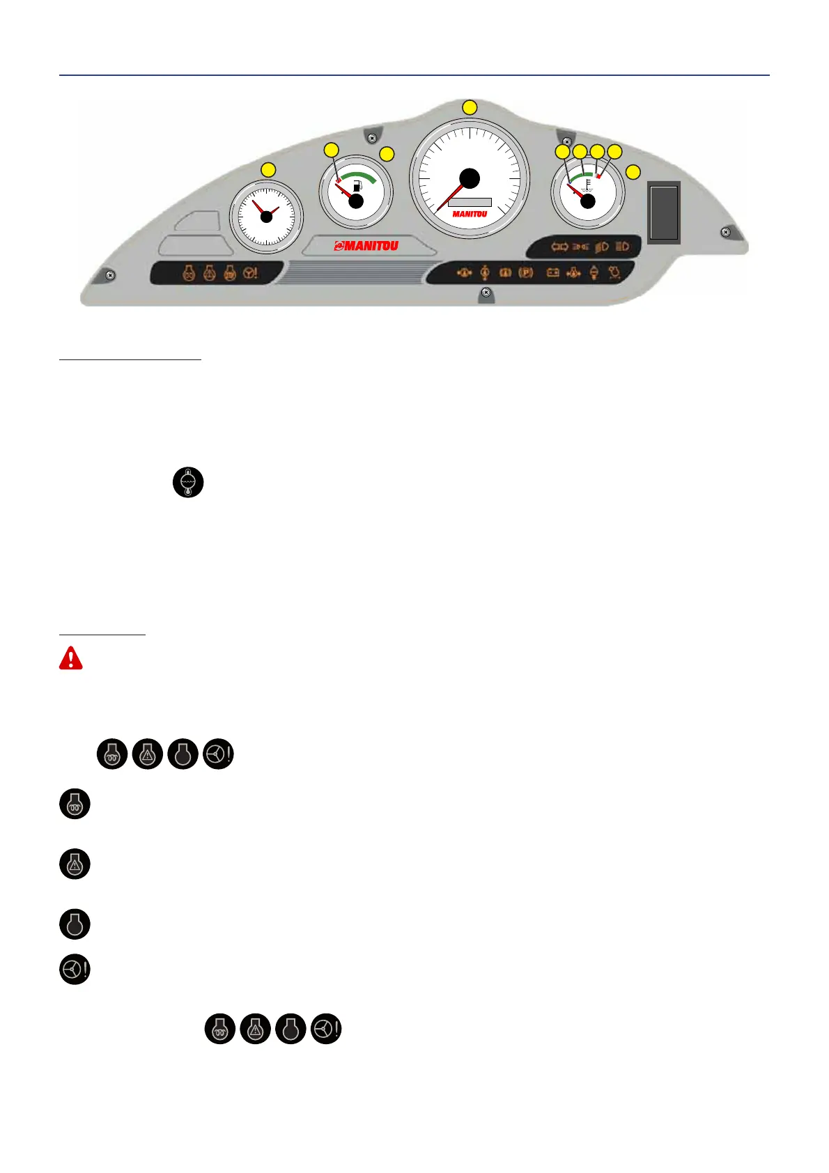 When activating the electrical system of the lift truck, all the red and orange lamps and the panel’s buzzer must light to indicate