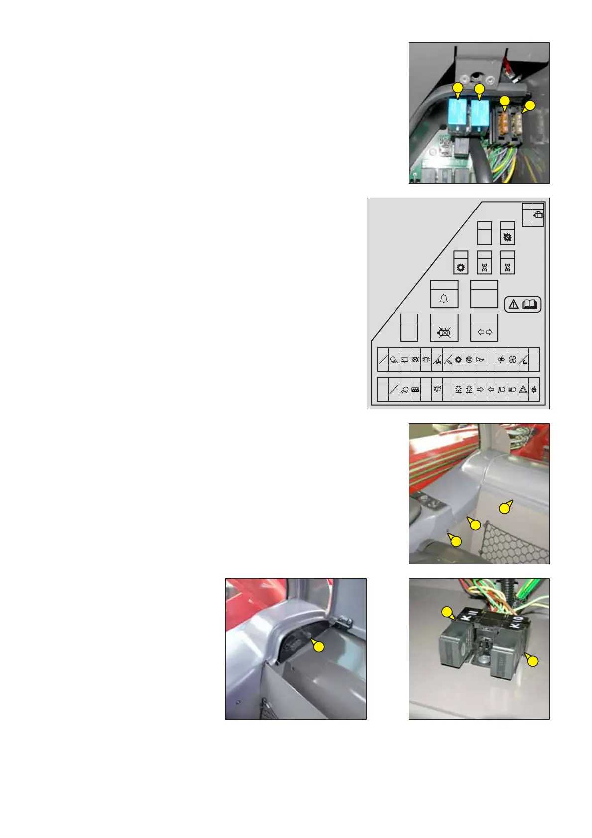 - Remove the les casings 3 and 4 of the hydraulic control for access to relays.