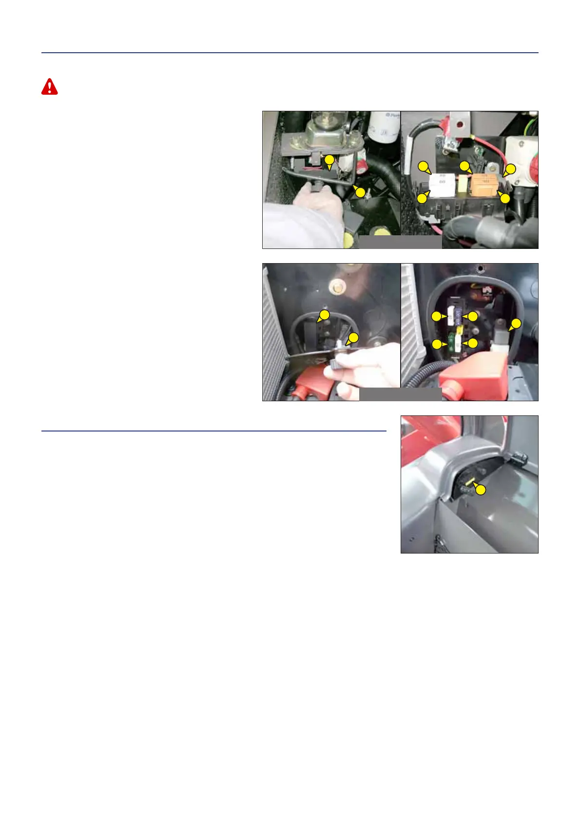 Remove casing 1 and cover 2 for access to fuses and relays.