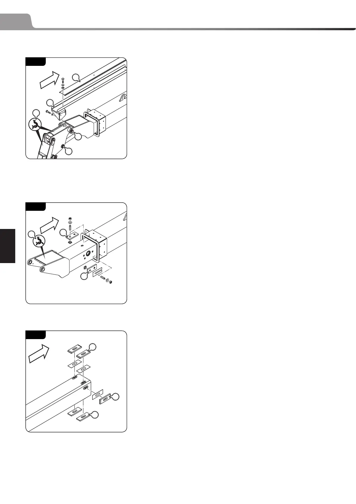 - Remove the pads (2, 055 - 9) of the telescope jib, pay attention to