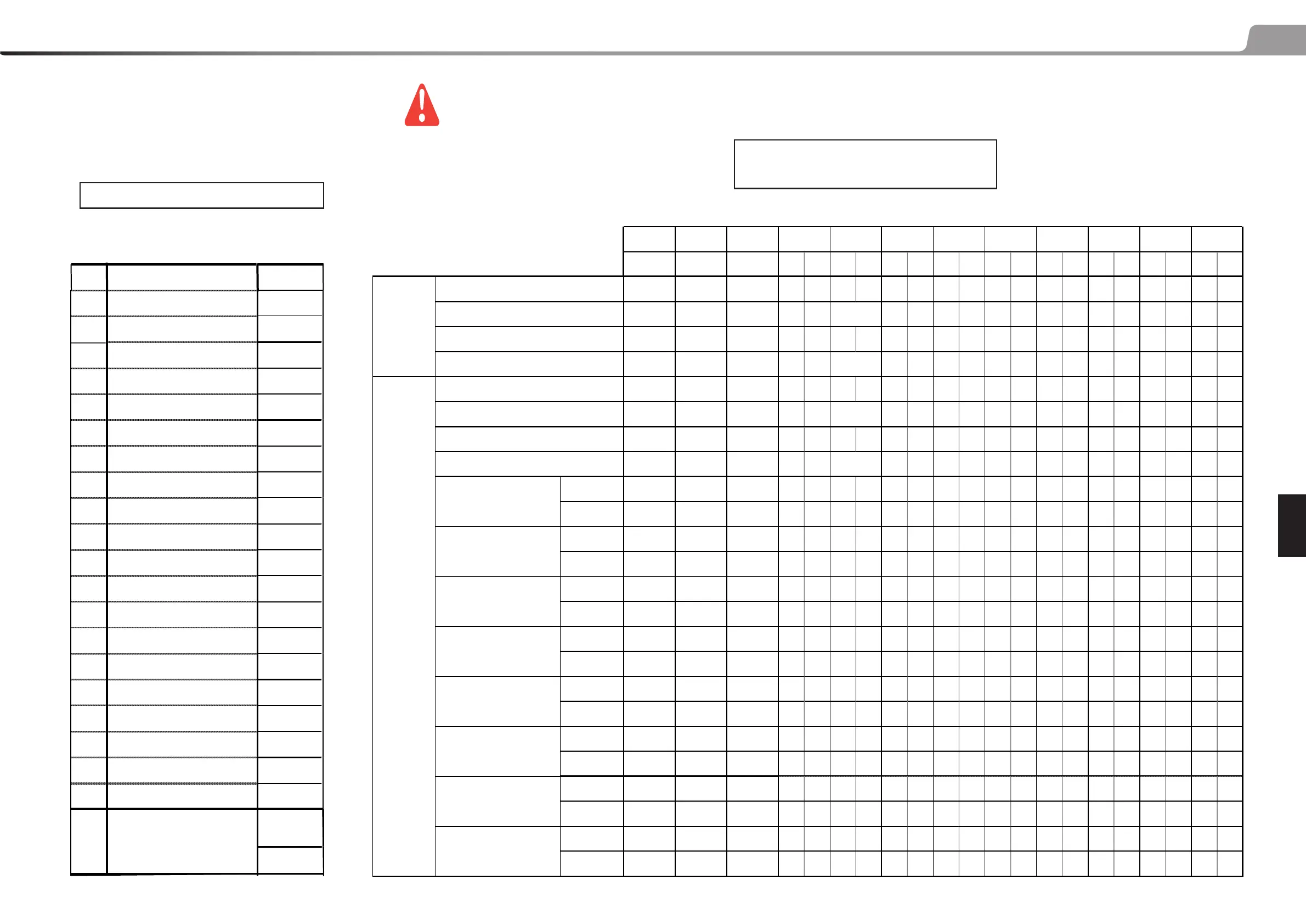 ACTIVATION TABLE FOR THE ELECTRO-VALVES