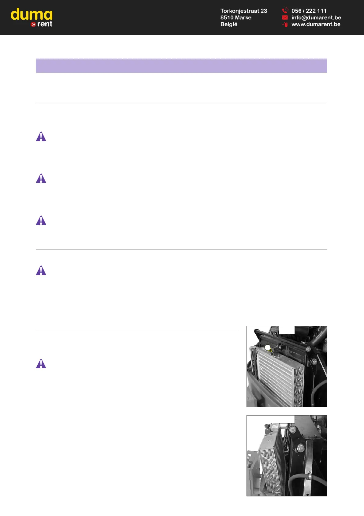 - In order to prevent the radiator becoming clogged, clean the radiator with a compressed air jet directed from inside to outside.