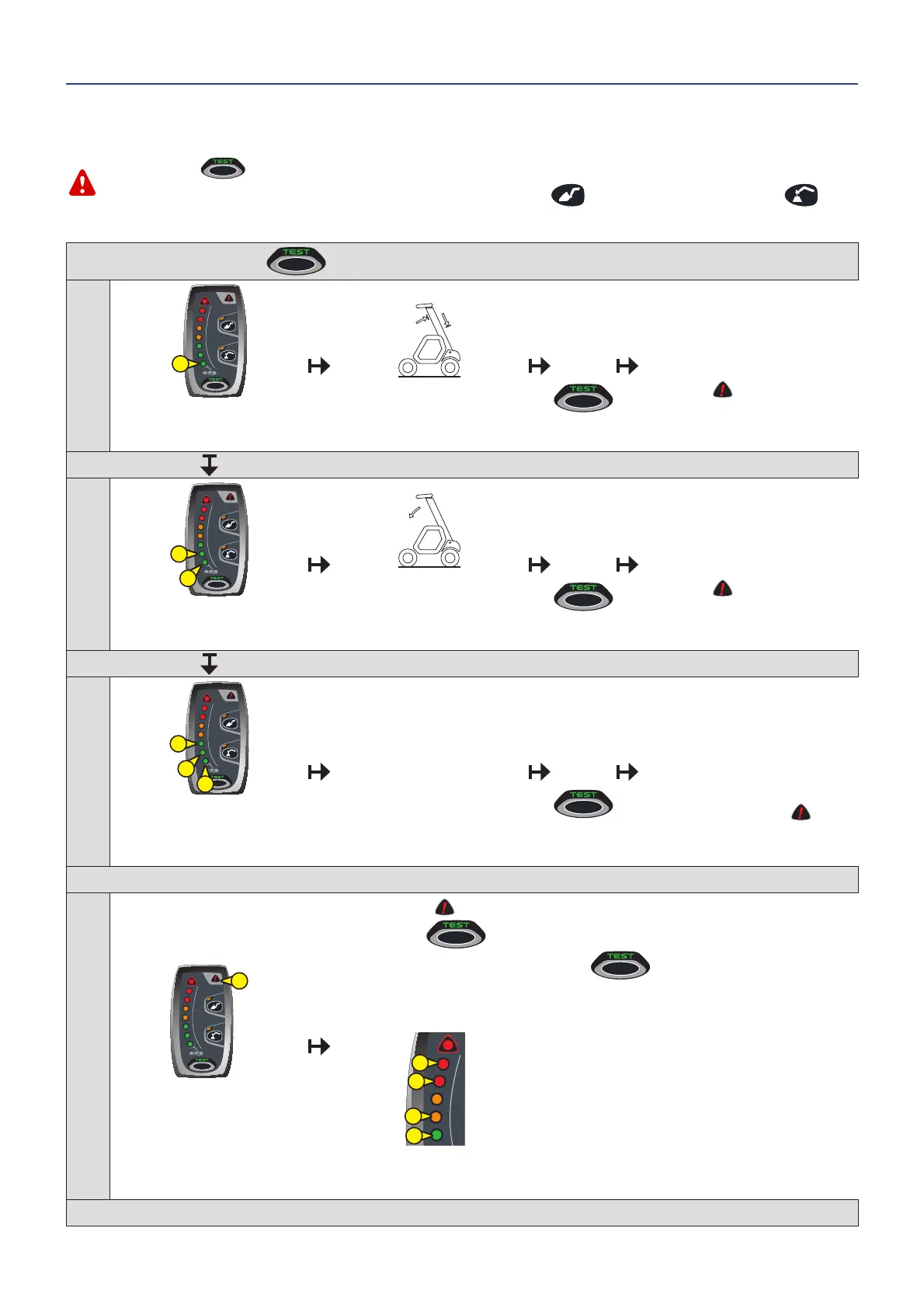 If in doubt during the test procedure, exit cleanly by short pressing the “BUCKET” MODE