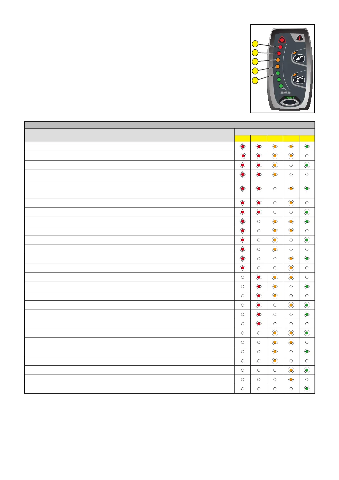 The error codes are indicated by leds A3 to A7 on the warning device and longitudinal