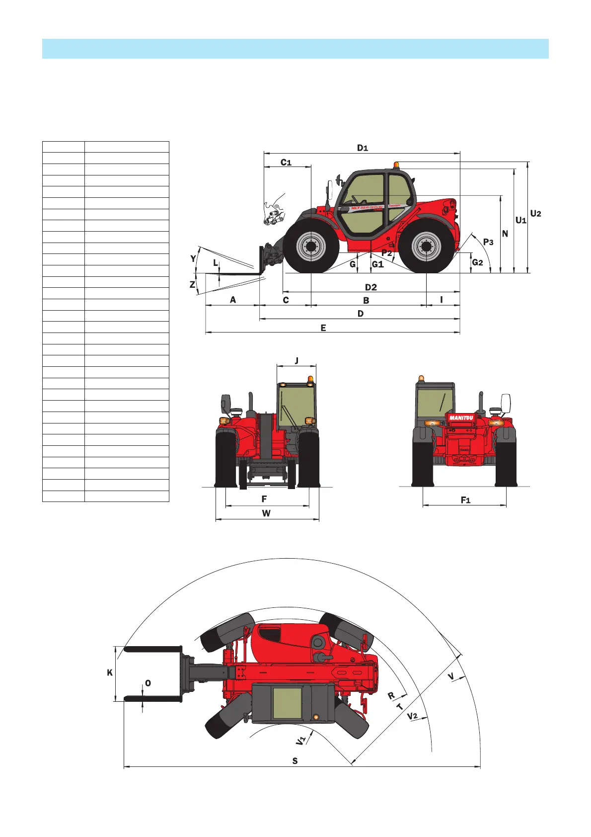 Manitou F-E3 Series - Dimensions and Load Chart
