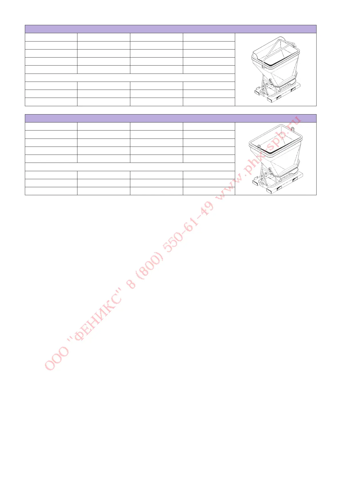 Nominal load capacity 1000 L/2200 Kg 1500 L/3300 Kg