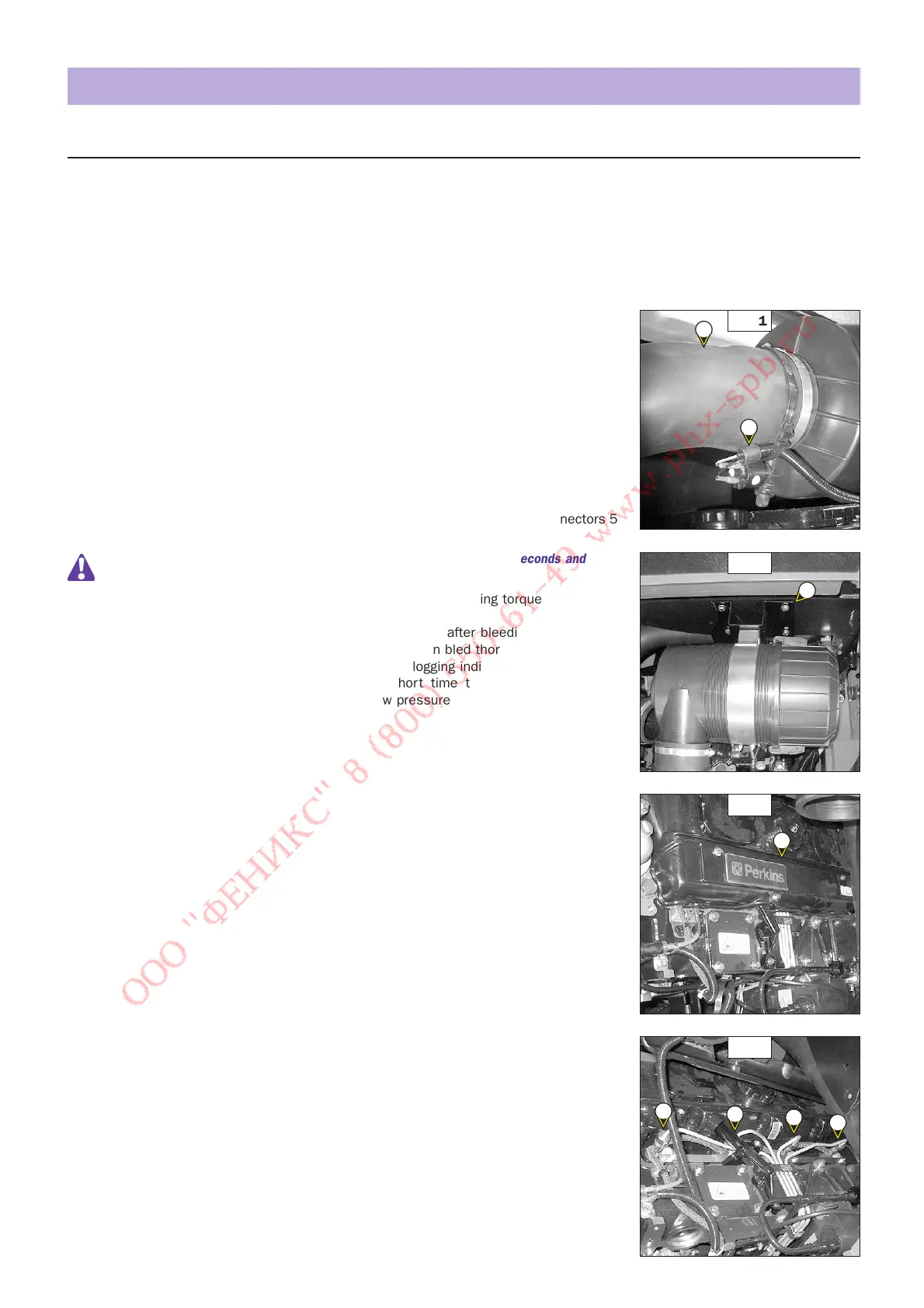 - Activate the starter until the diesel fuel flows out free of air at high pressure connectors 5