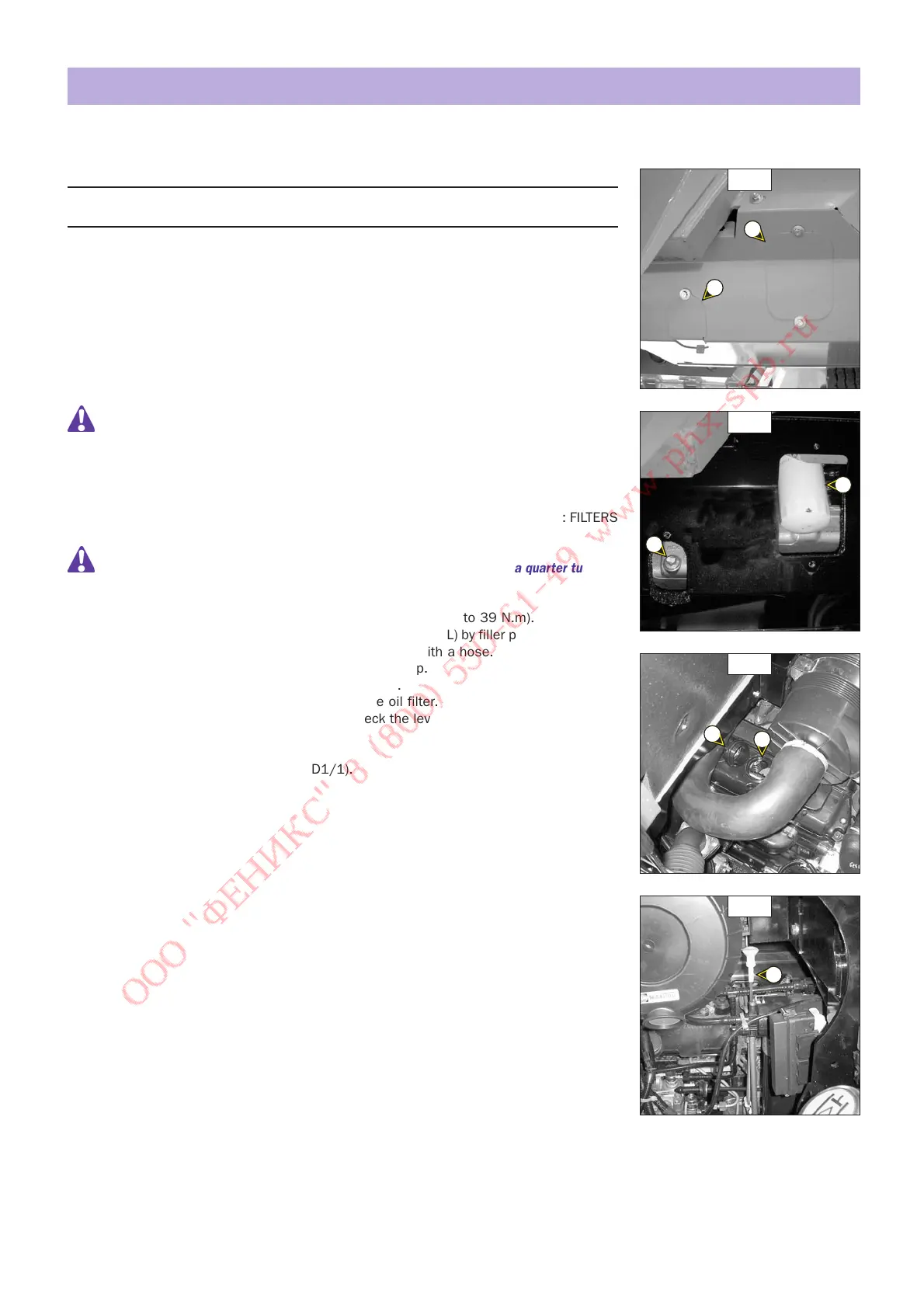 - Remove I.C. engine oil filter 4 (fig. D1/2) ; discard the filter and the filter seal.