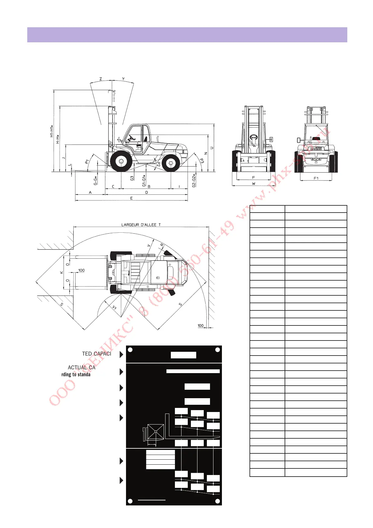 DIMENSIONS AND LOAD CHART