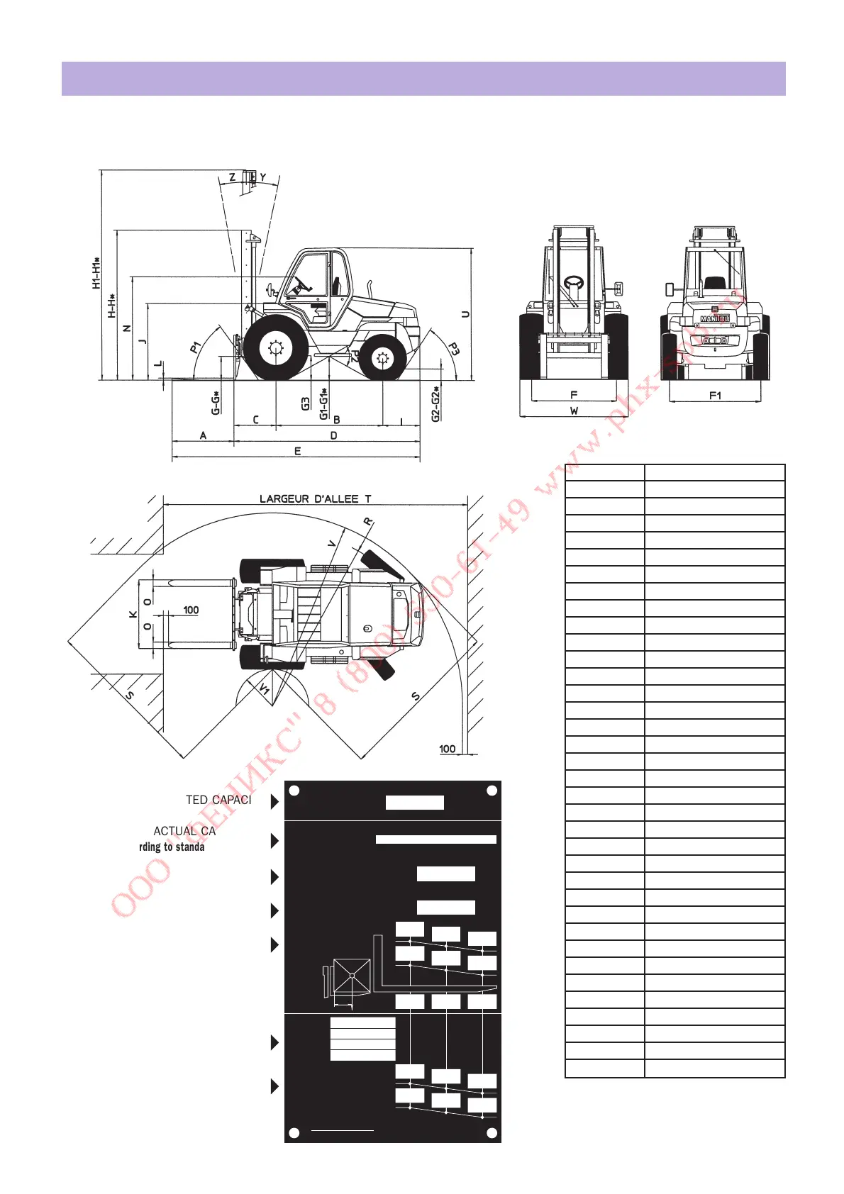 DIMENSIONS AND LOAD CHART