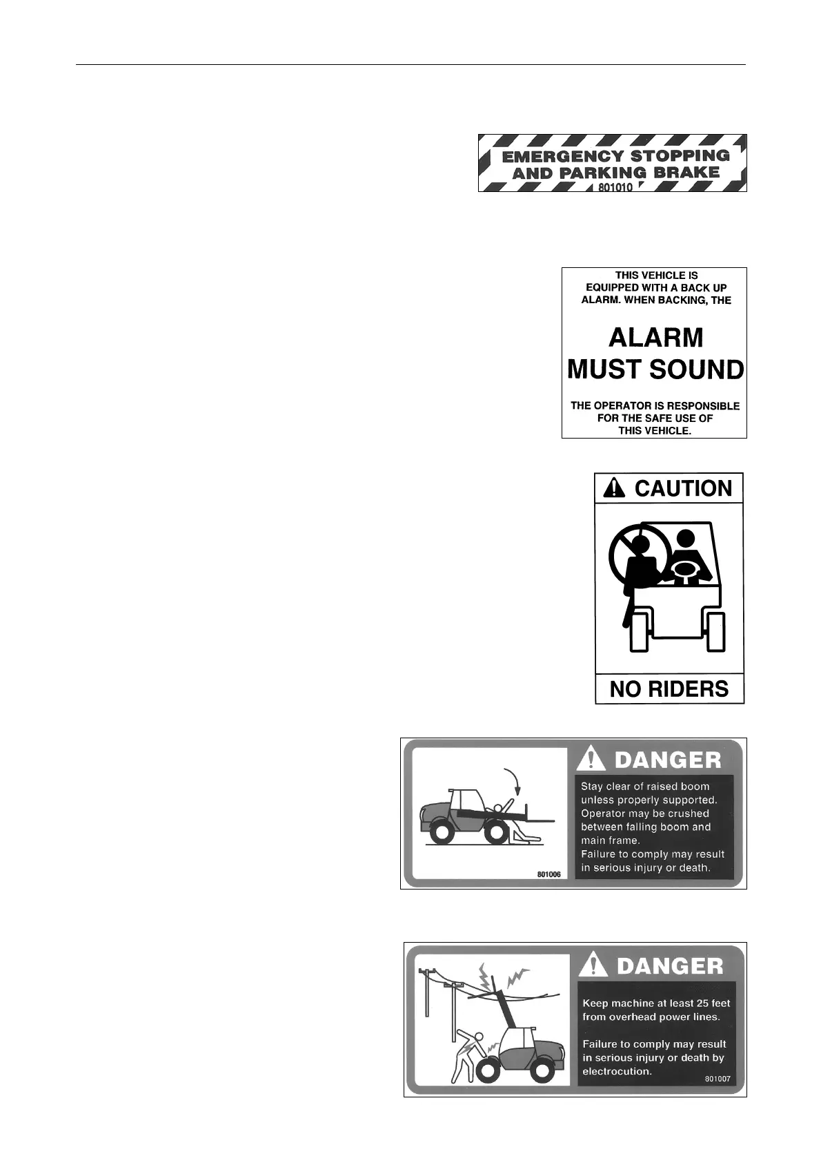 Informs: riders are not allowed on the forklift.