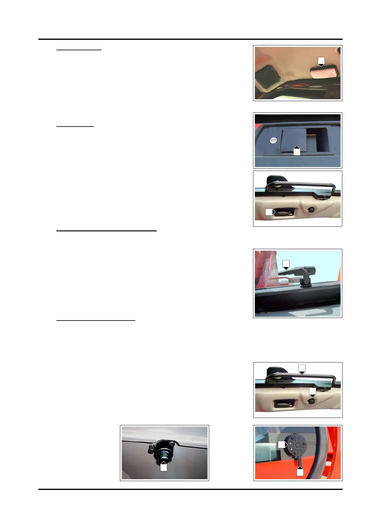 To open the rear window, pull the lever "D" clockwise to the right