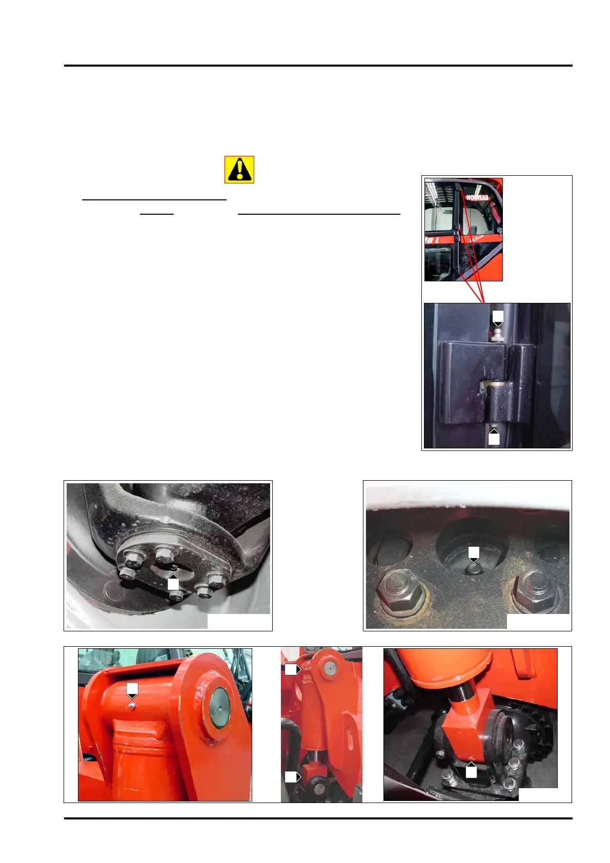 4 - Grease the cab door “1” (fig. B14).