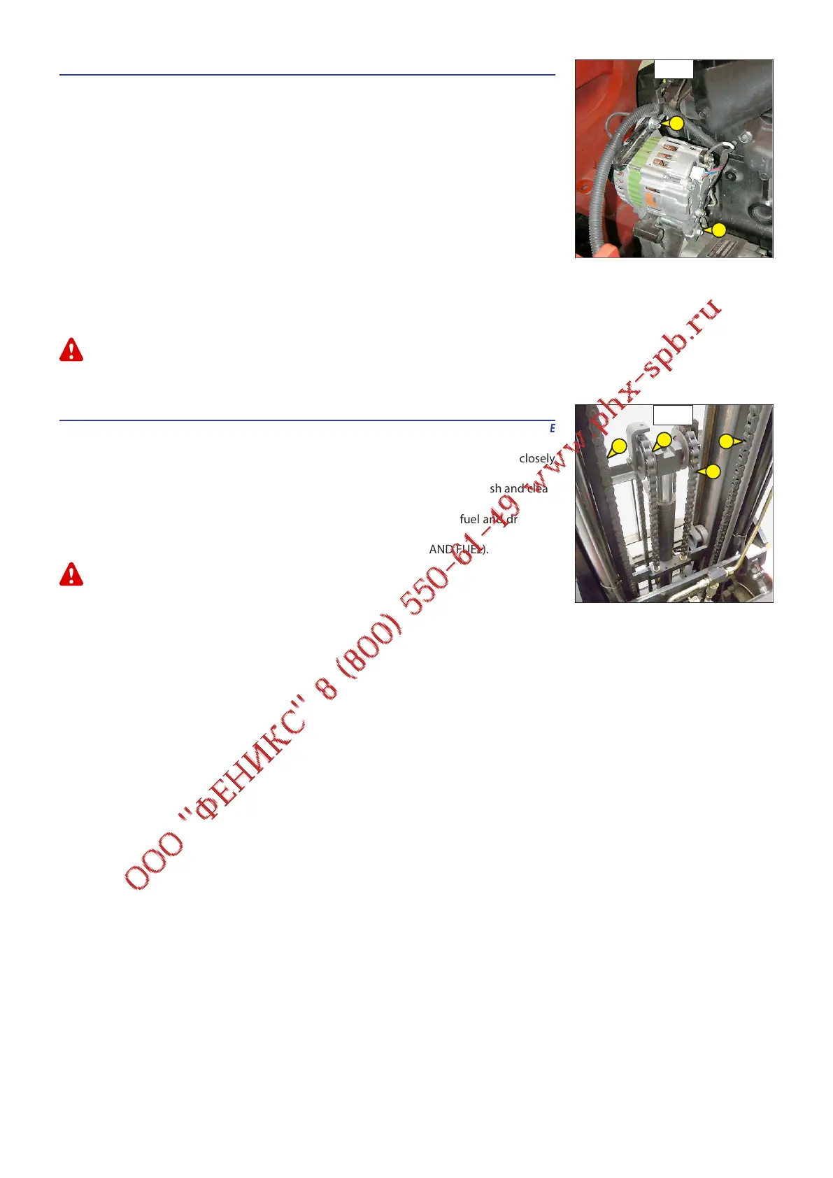 - Wipe the mast lifting chains 1 (fig. D6) with a clean, lint-free cloth, then examine them closely