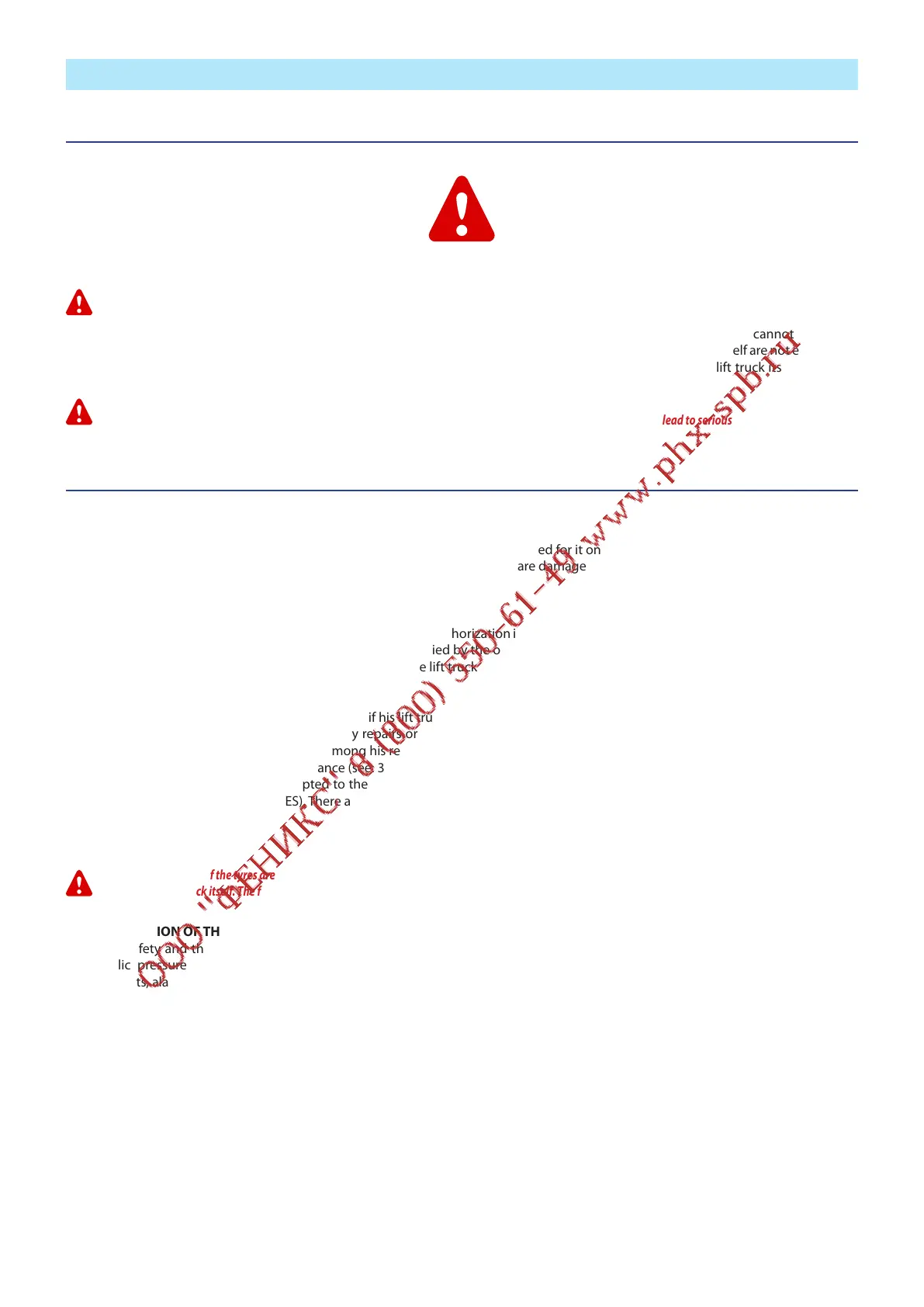 WARNING ! BE CAREFUL ! YOUR SAFETY OR THE SAFETY OF THE LIFT TRUCK IS AT RISK.