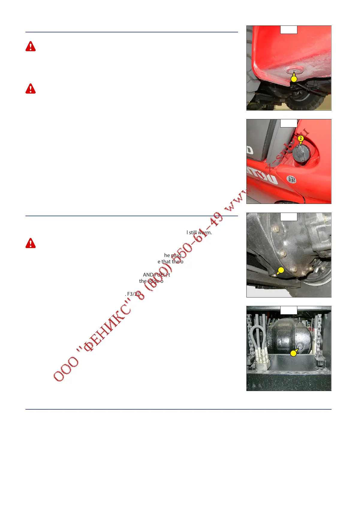 - Fill up with oil (see: 3 - MAINTENANCE: LUBRICANTS AND FUEL) through filling port 2 (fig. F3/2).