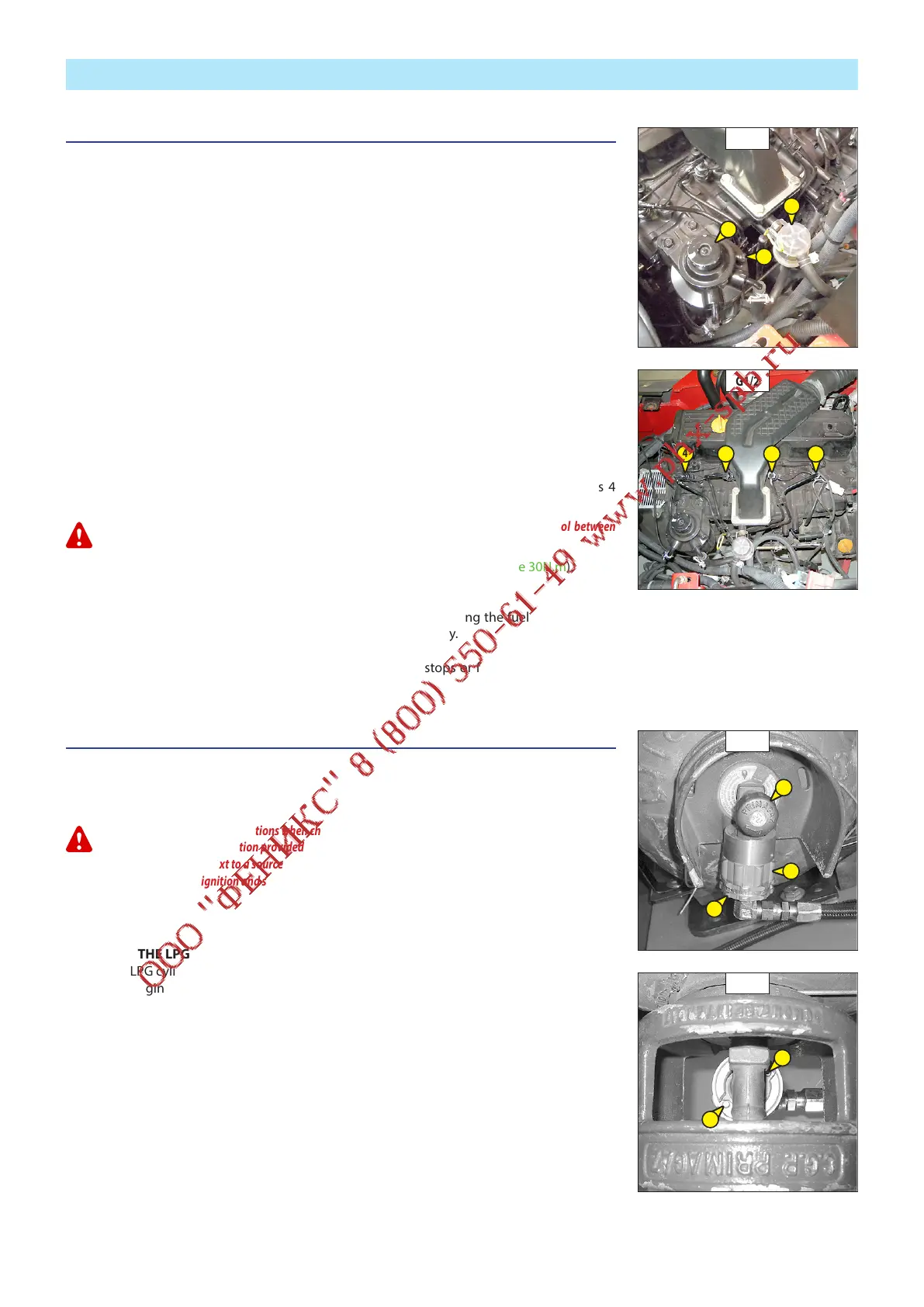 - Tighten the connections while the diesel fuel is flowing out (tightening torque 30N.m).