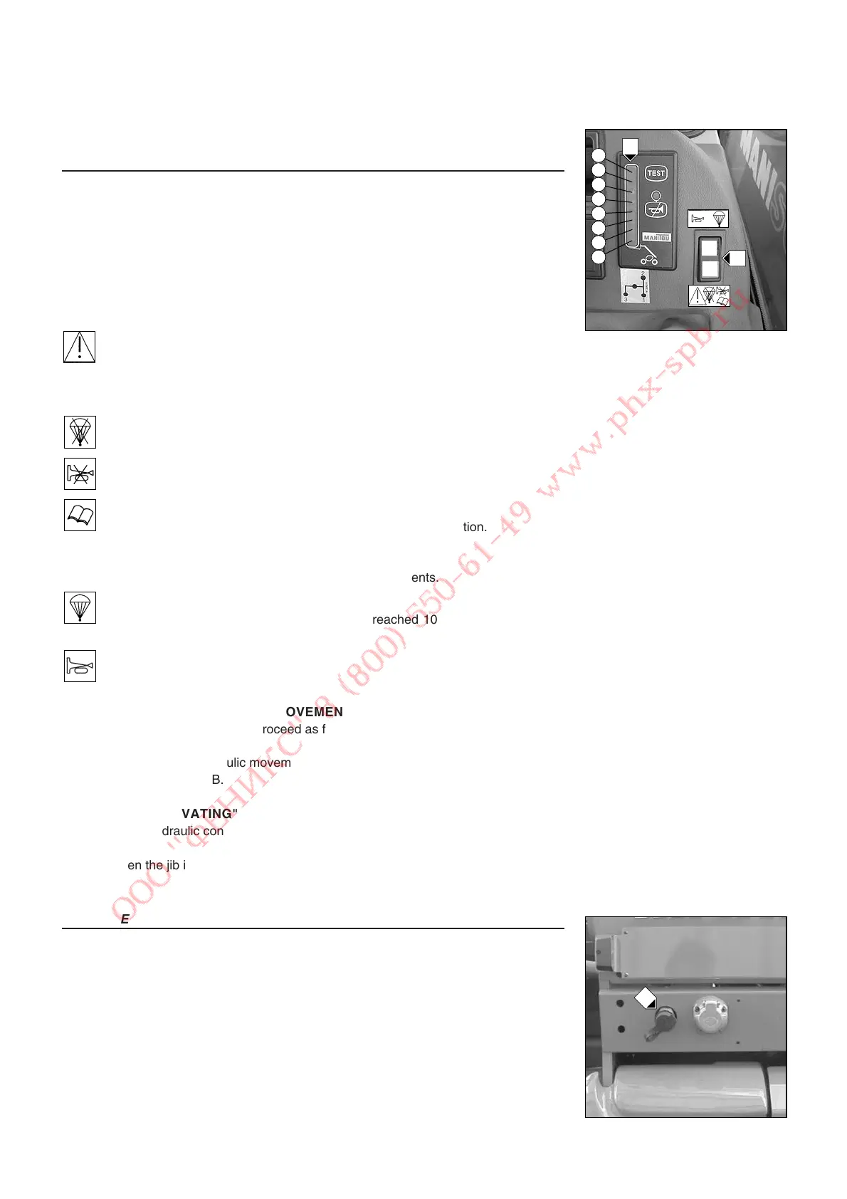 To recover the hydraulic controls carry out the positive hydraulic movements (Raise and retract the jib).