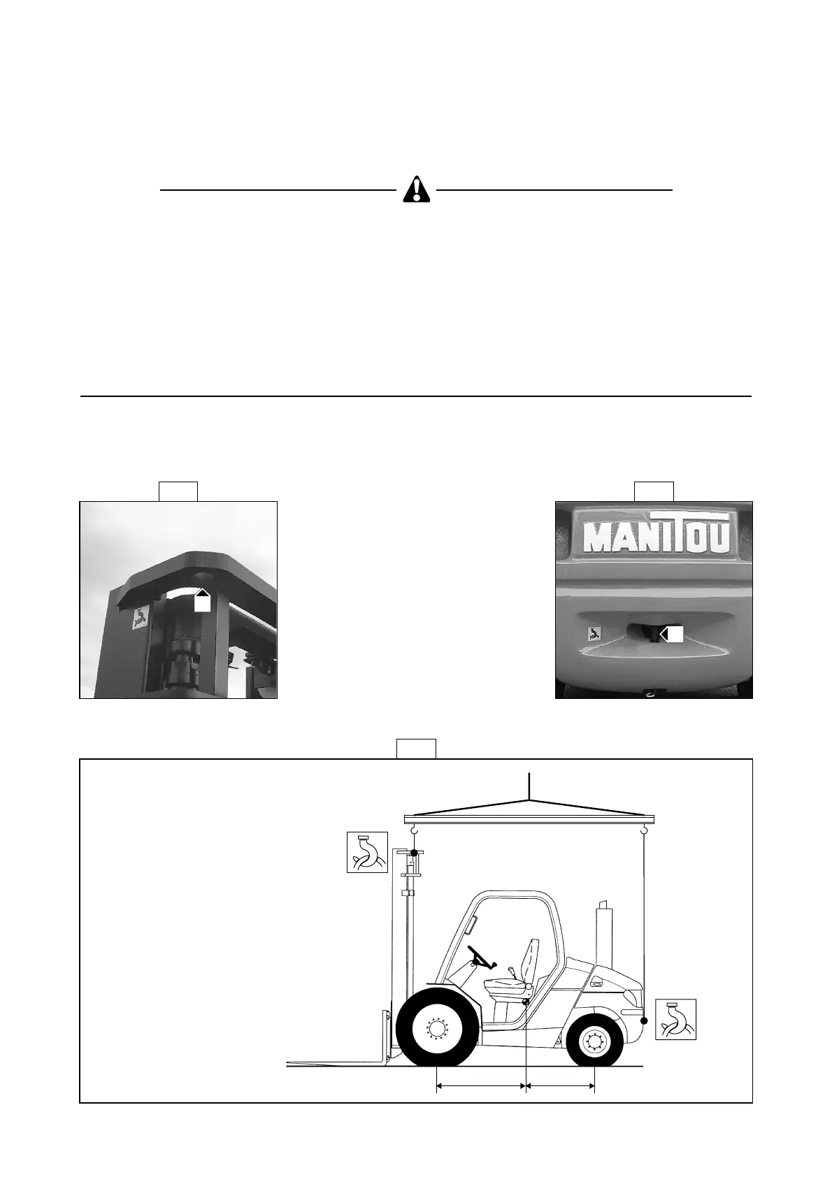 - Take into account the position of the lift truck gravity center for lifting (Fig. H4/1).