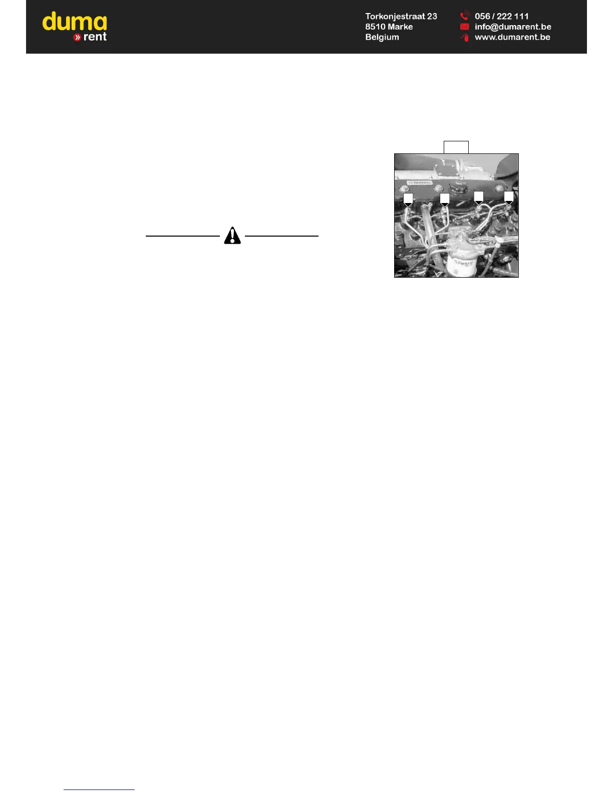 - Activate the starter until the diesel fuel flows out free of air at connections 5