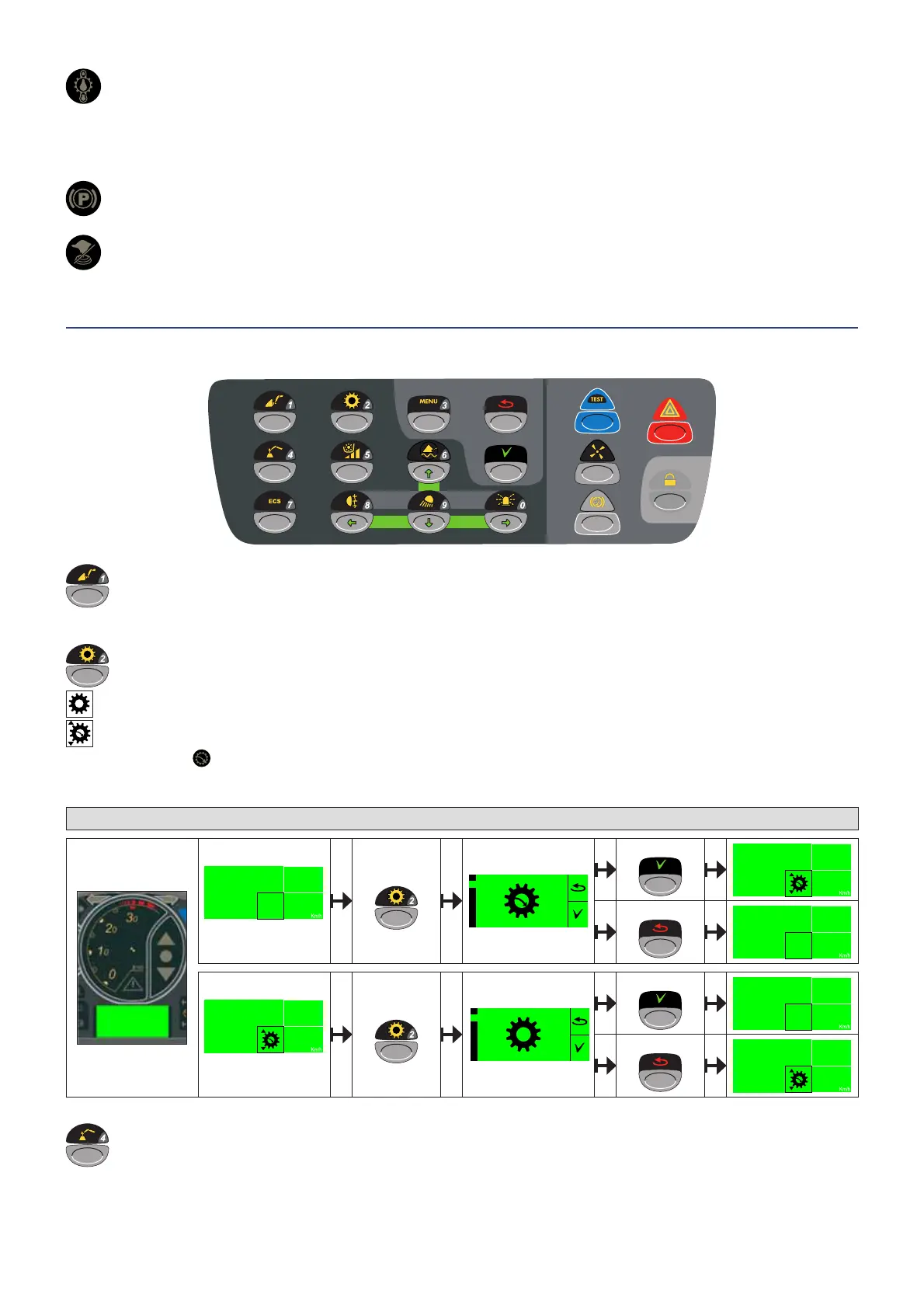The lamp lights when the hydraulic controls are neutralised and when a forbidden hydraulic movement is requested.
