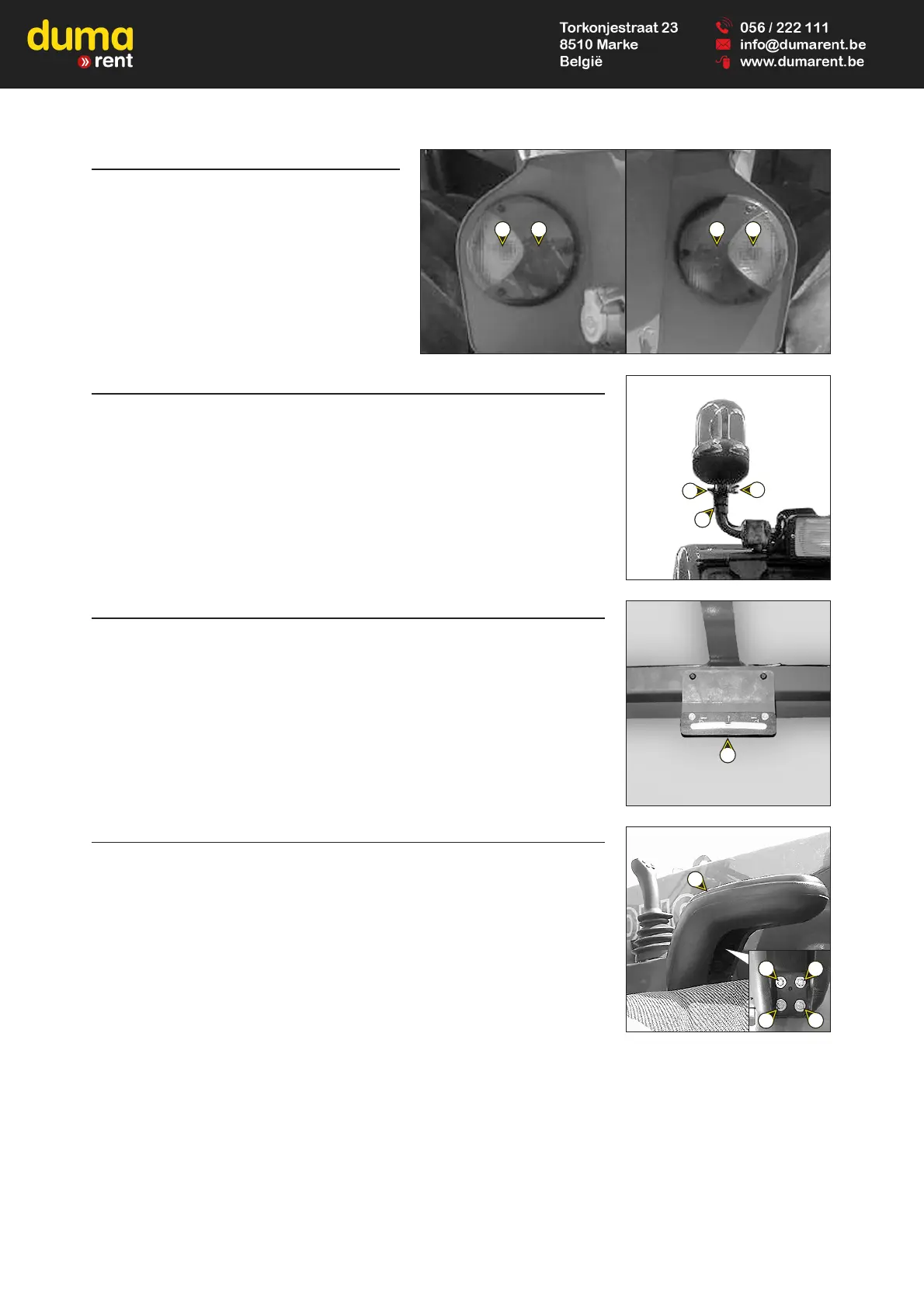 - Loosen nut 1 and remove the revolving light.