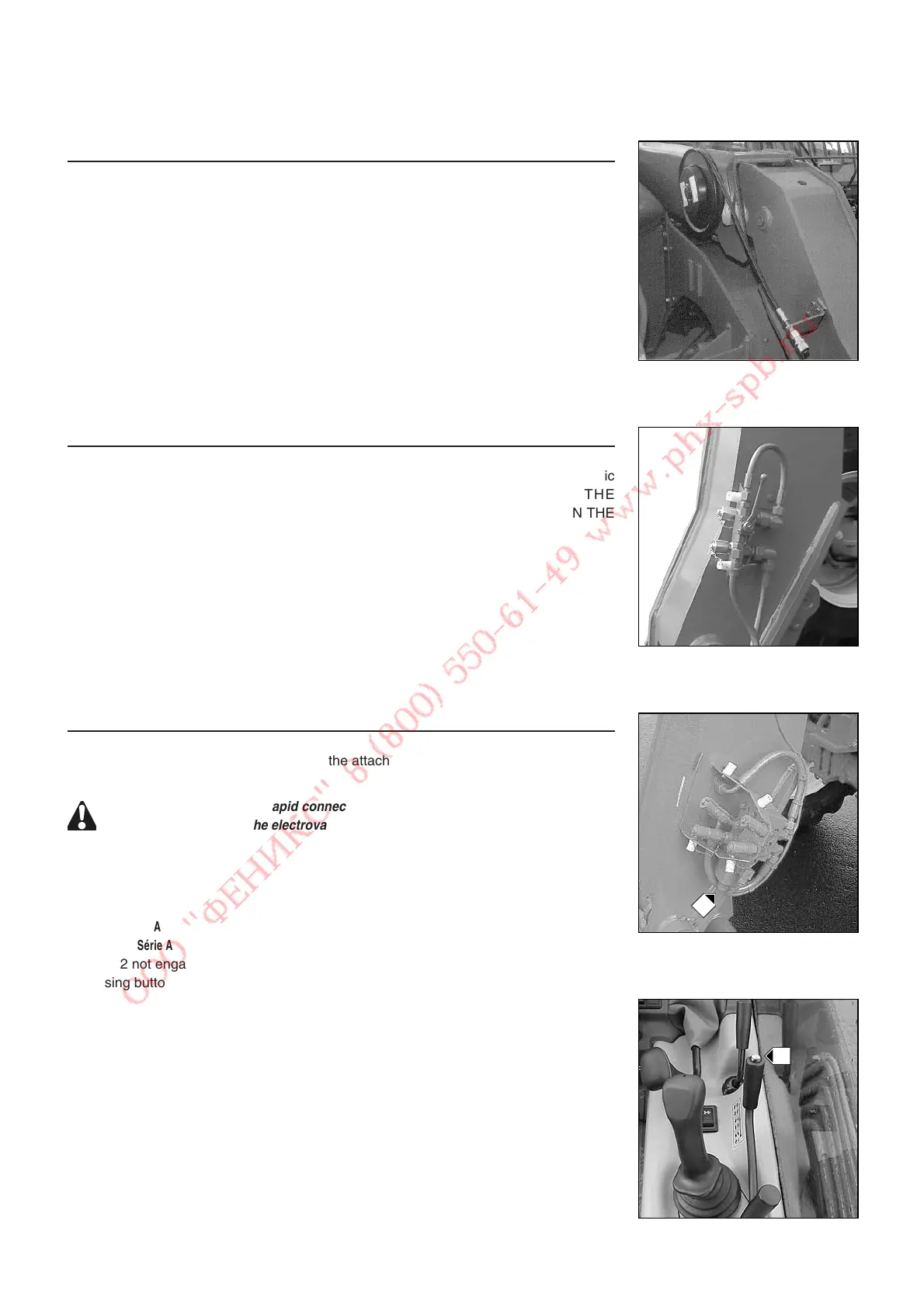 To make connection of the rapid connectors easier, decompress the hydraulic circuit