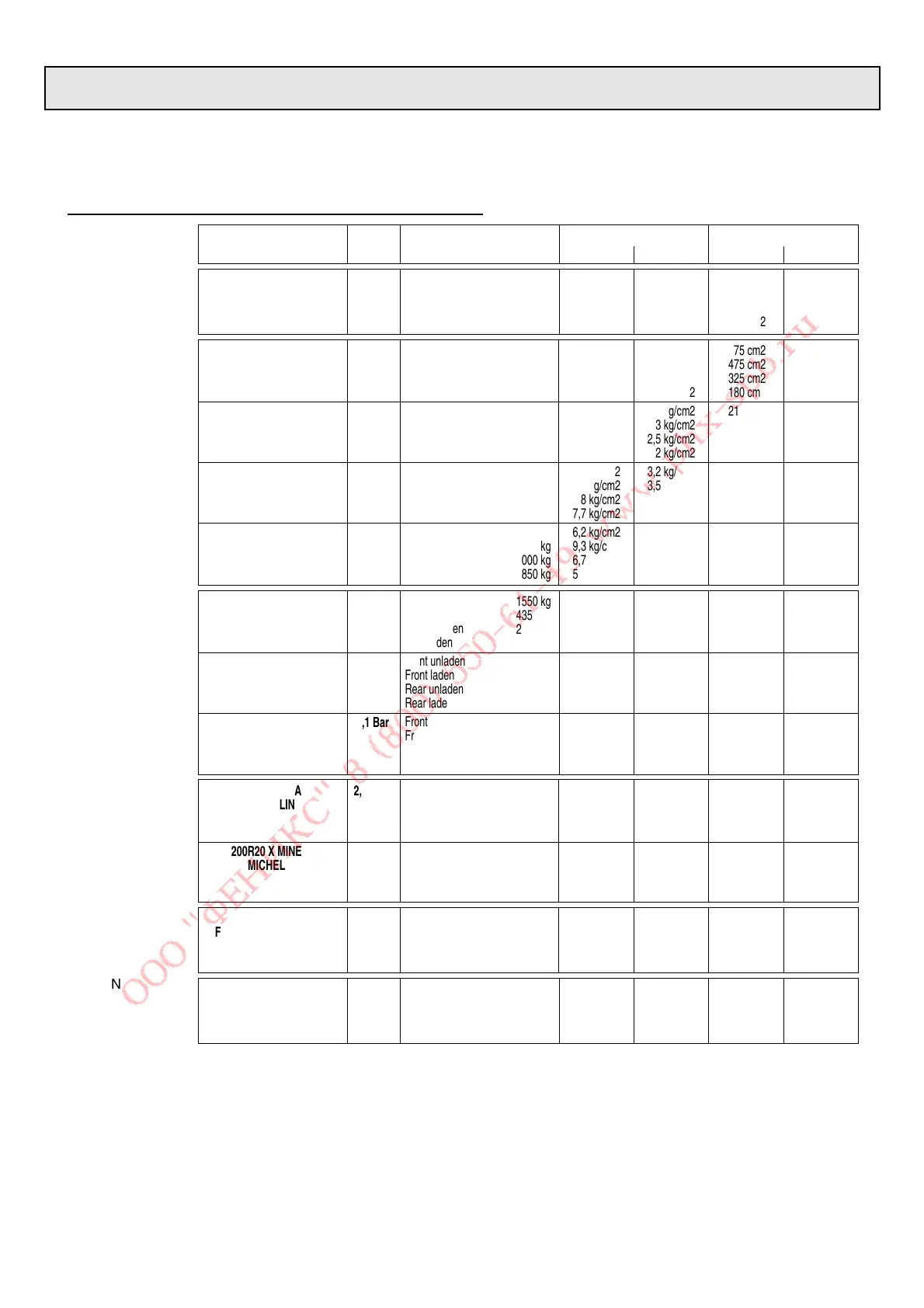 MICHELIN 4350 kg 2,4 kg/cm2 1,1 kg/cm2 1795 cm2 3850 cm2