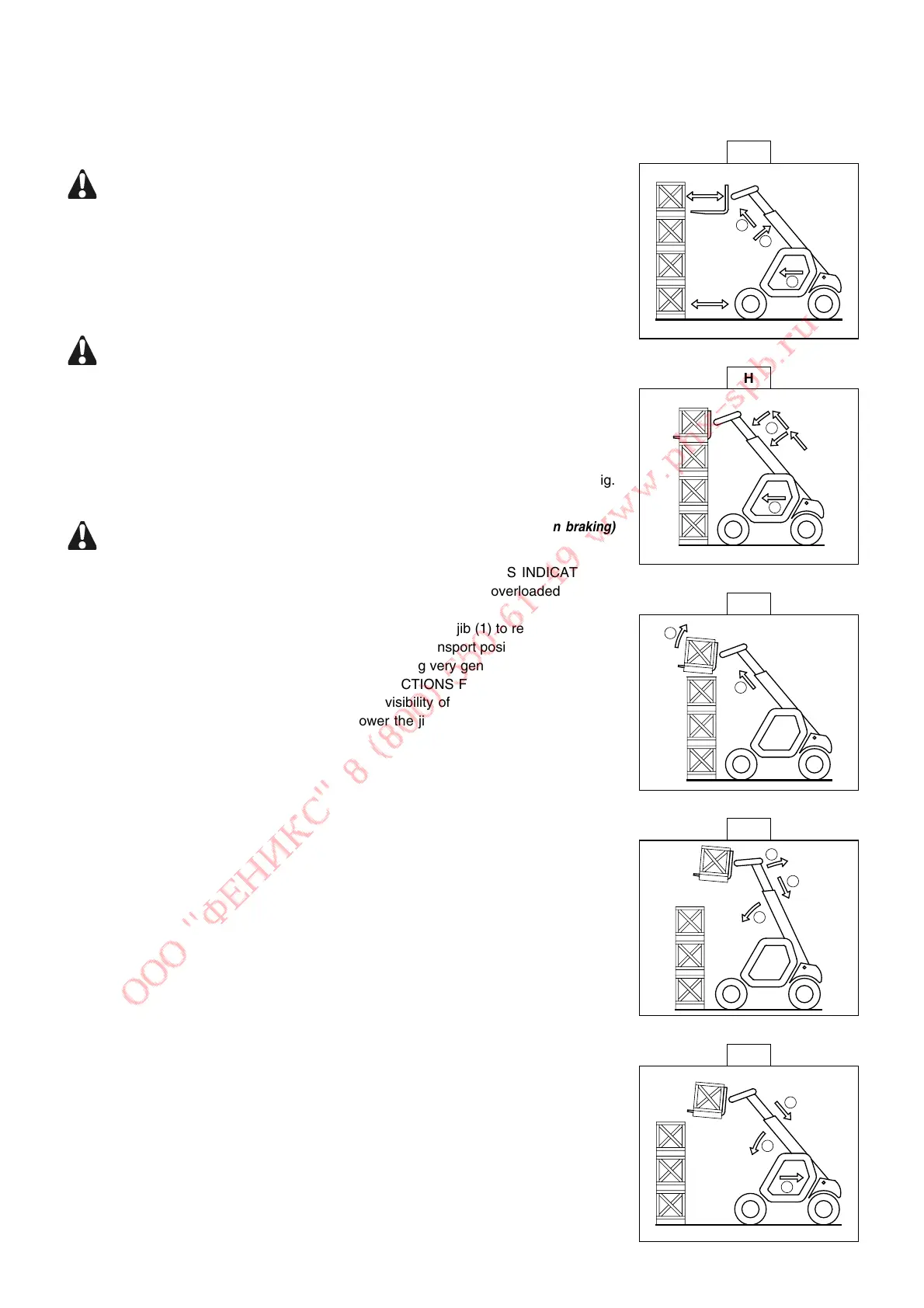 retract (2) and lower the jib (3) to bring the load into the transport position (Fig. J).