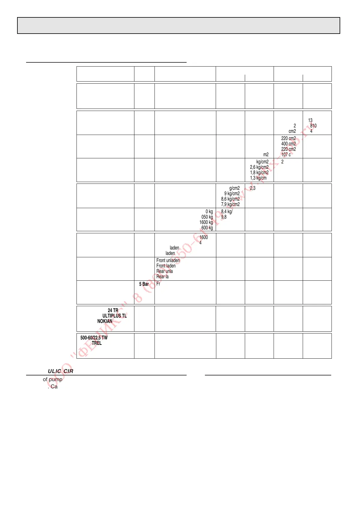 500/65 R 24 TR 3,2 Bar 1600 kg 2,1 kg/cm2 0,9 kg/cm2 780 cm2 1880 cm2