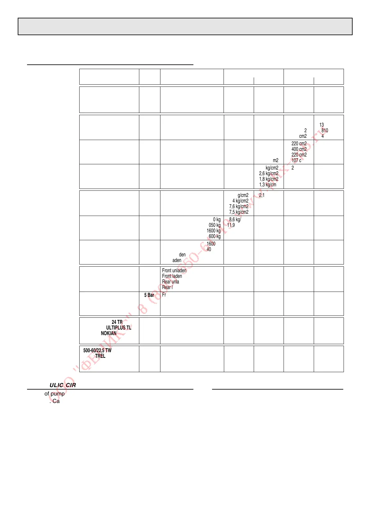 FOREST MULTIPLUS TL 4050 kg 2,7 kg/cm2 1,5 kg/cm2 1500 cm2 2650 cm2