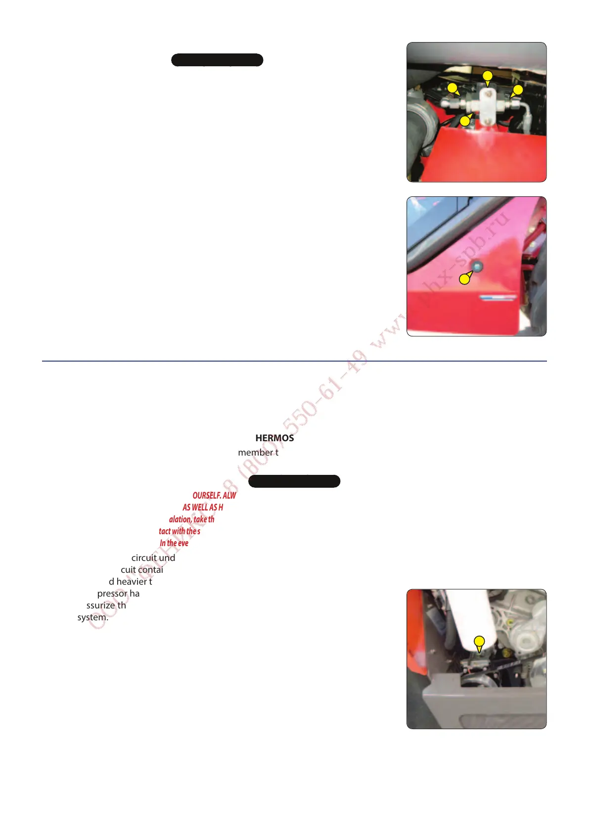 DO NOT ATTEMPT TO REPAIR ANY FAULTS BY YOURSELF. ALWAYS REFER TO YOUR DEALER WHEN REFILLING CIRCUITS, AS THEY HOLD THE CORRECT SPARE PARTS,