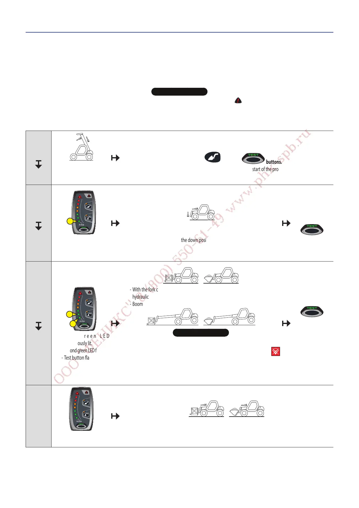 When the reset is complete, check correct operation of the longitudinal stability limiter and warning device (see: 3 - MAINTENANCE: A - DAILY OR EVERY 10 HOURS