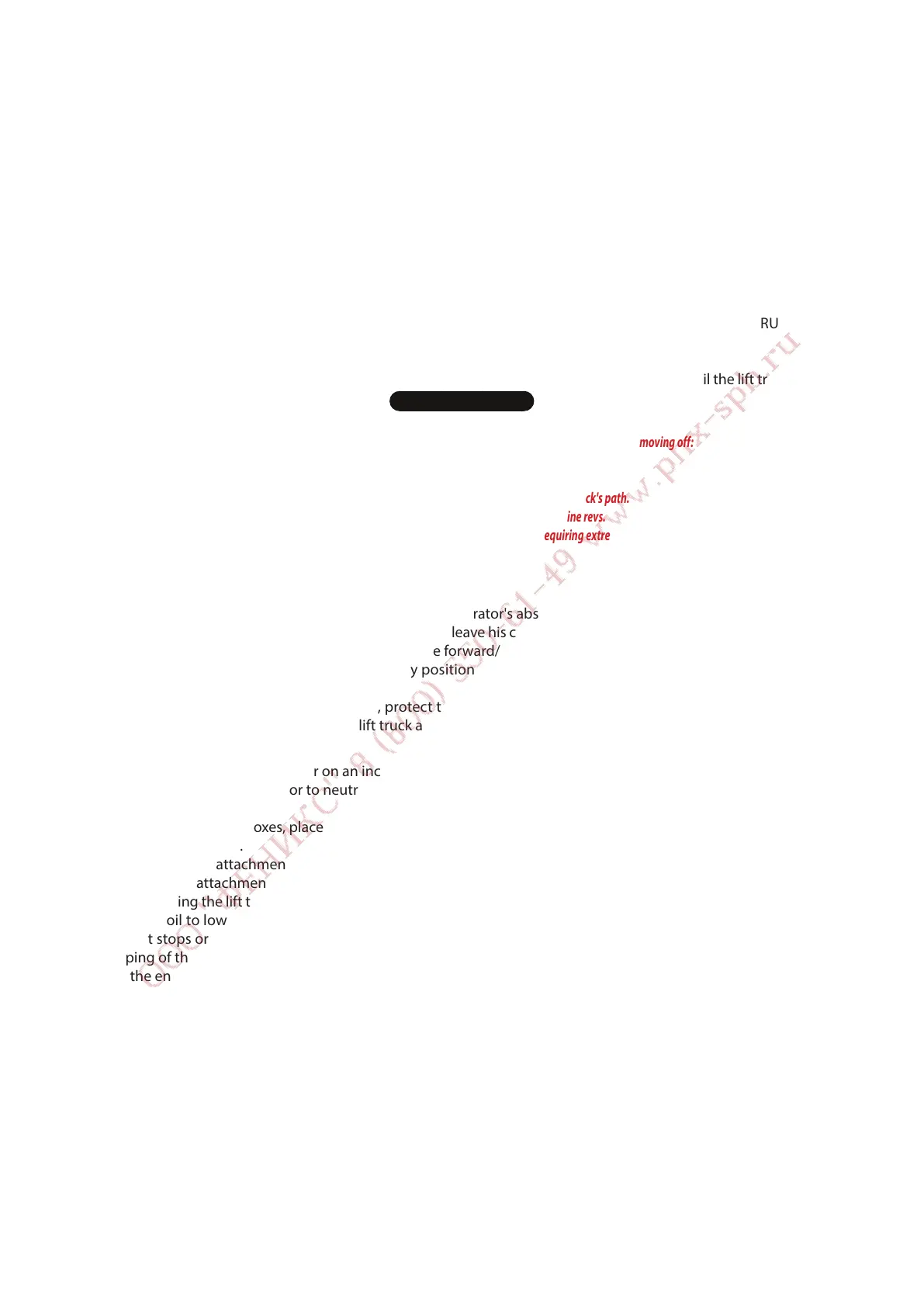 - Always drive the lift truck with the forks or attachment to the transport position, i.e. at 300 mm from the ground, the