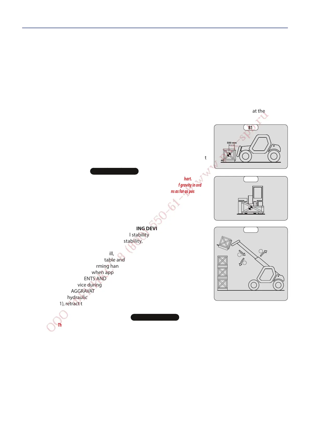 of the centre of gravity is 500 mm from the base of the forks (fig. B1). For a higher