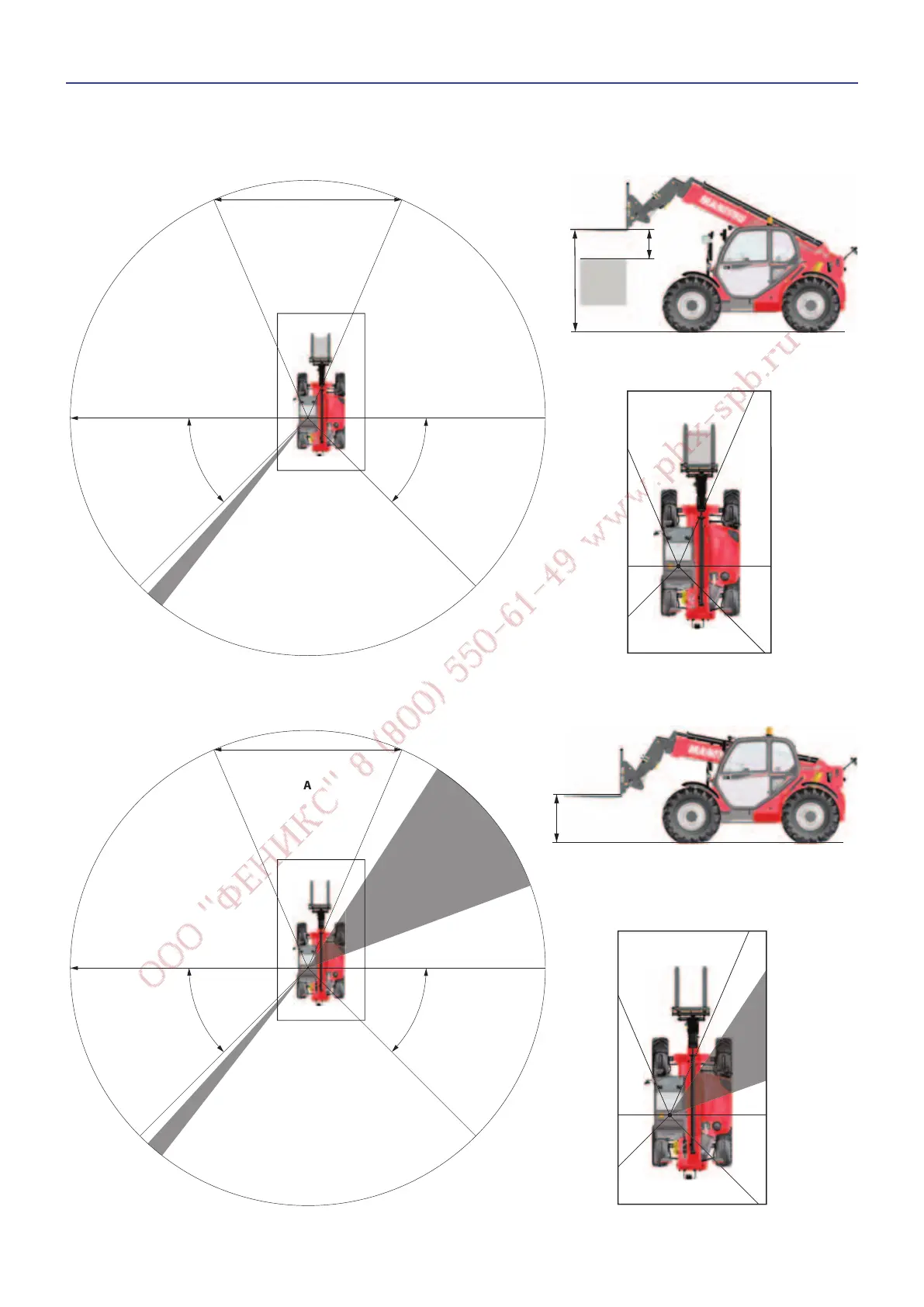 In accordance with EN15830, the two diagrams indicate blind spot zones on the visibility test circle (r 12m) and the 1m